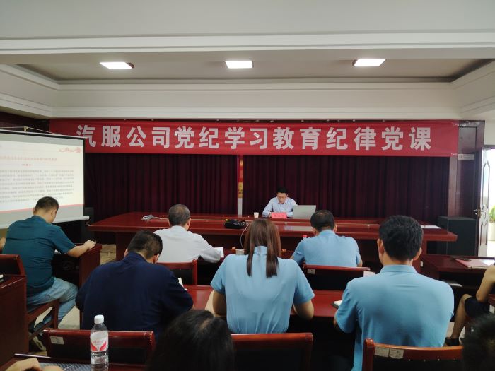 根据党纪学习教育安排,6月28日下午,汽服公司党委书记、总经理鞠仕亮以“加强纪律建设 恪守党纪条规 以严明纪律引领和保障公司高质量发展”为题,为公司党员干部讲授纪律党课。公司领导、公司各部室负责人、各单位领导班子成员,各单位党务工作者代表及公司机关党员代表等参加。