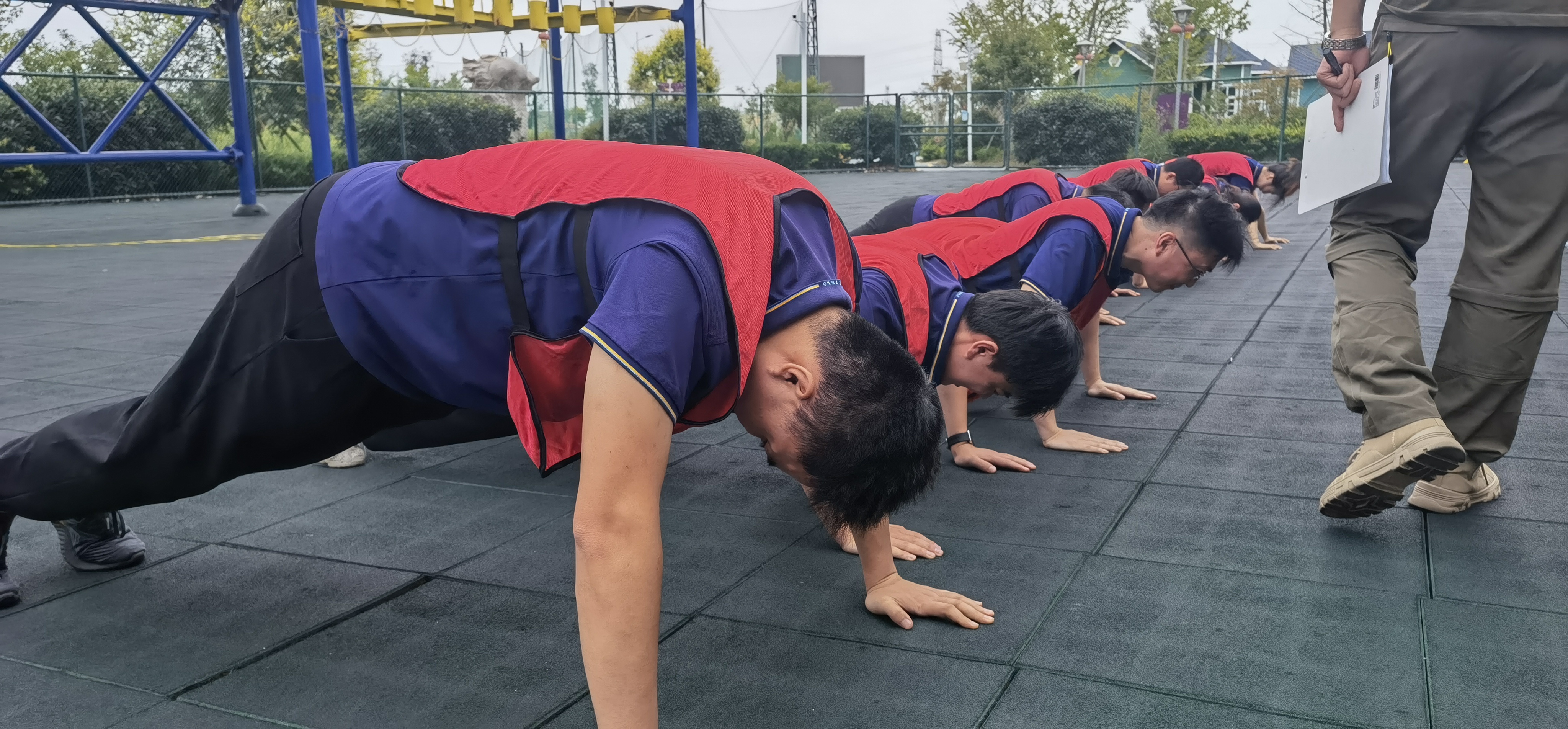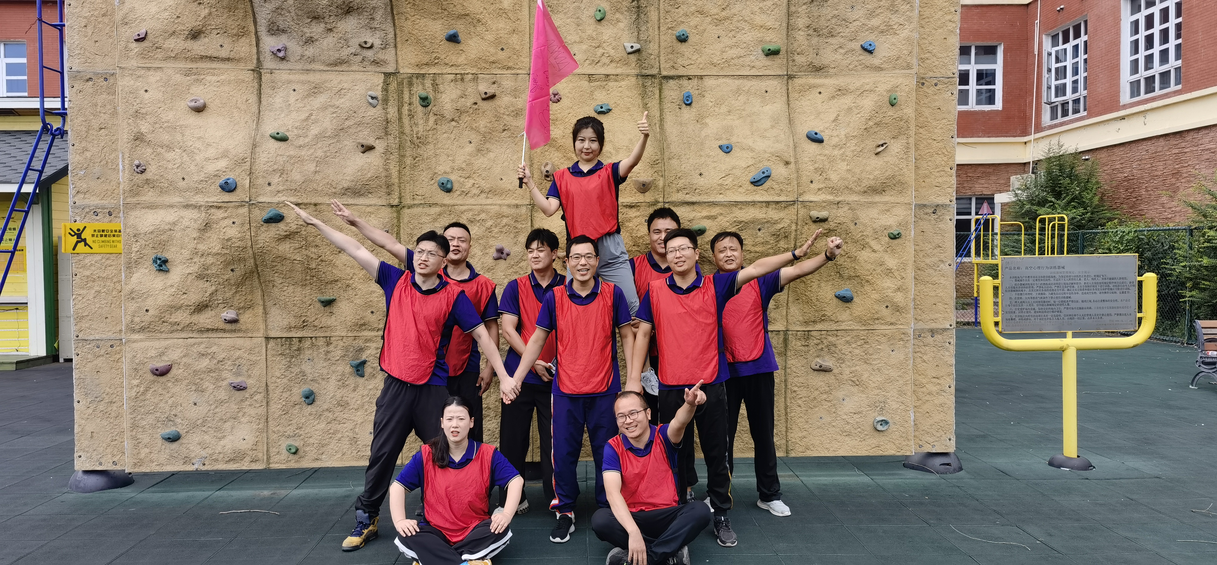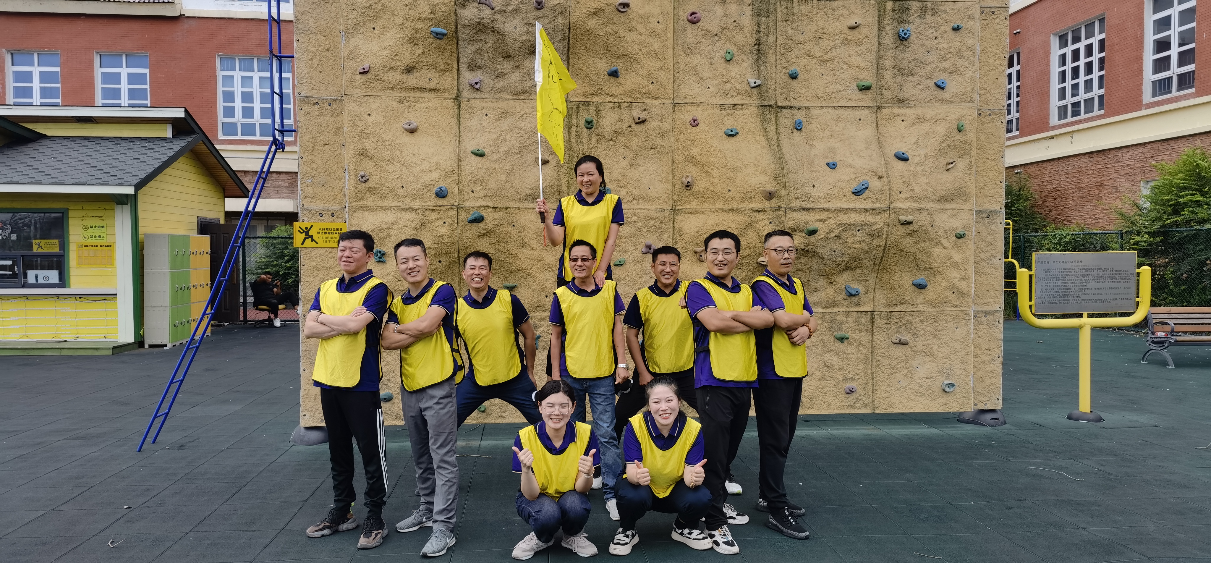 在教练员的引导下,队员们迅速进入状态,按照红、黄两种颜色组成对抗竞赛队,从一开始团队确定队长,设计团队的队名、队歌、口号和队徽就预示了此次拓展训练的整个过程都离不开集体的智慧和力量。在通过开展领袖风采、空中断桥、空中走廊、实战CS以及毕业墙等高强度的军事对抗竞赛中,队员们相互帮助,克服心理障碍和高空眩晕等困难,迎难而上,大胆挑战自我,不逃避不放弃,充分体现出了团队信任、沟通协调、团结协作的重要性,展现出港嘉公司团队上下同欲、积极向上的精神风貌。
