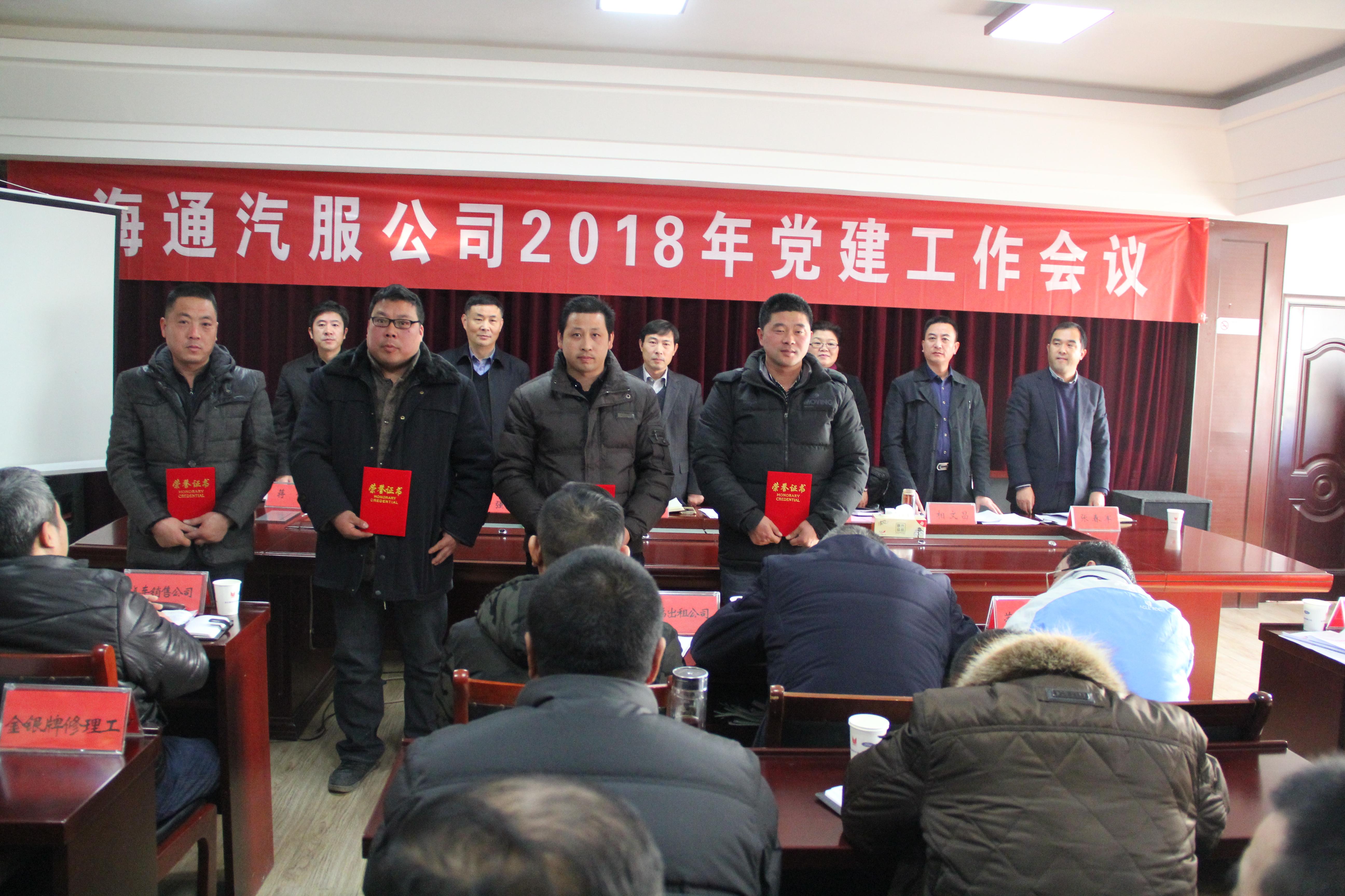 1月26日下午,海通汽车服务公司在三楼会议室召开2018年党建工作会议。公司领导班子、各单位及处室负责人、受表彰先进个人等40余人参加了会议。会议由总经理赵士强主持。