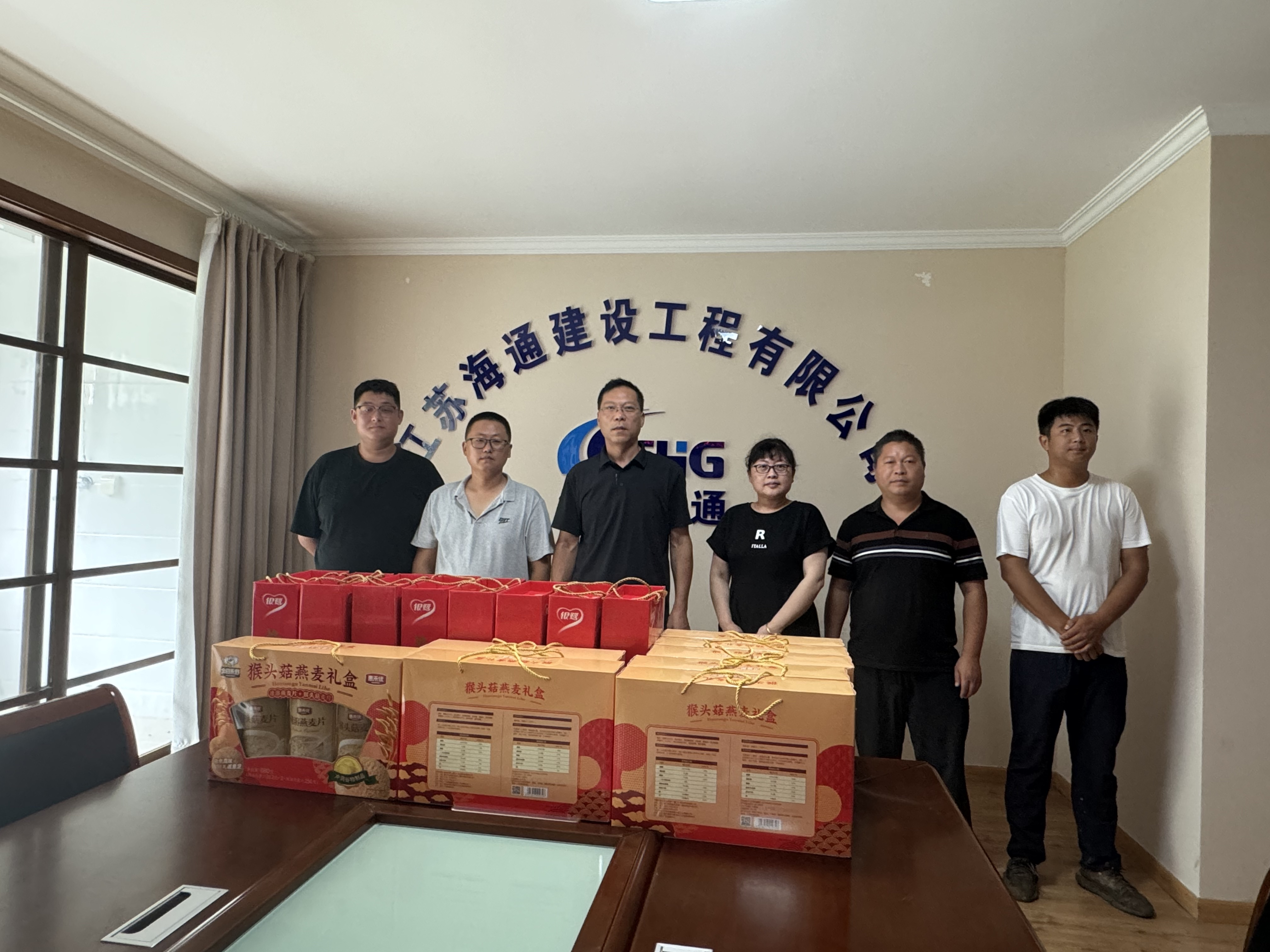 9月14日,交建分公司副经理刘乃良和工会工作人员前往(连云开发区)圩河东路(横四路-港前大道)、6号路(横四路-港前大道)新建工程施工项目部,与项目一线施工人员热情交流,详细了解工人们的工作、生活安排及工程进度、质量和安全措施等情况,向他们表示感谢并致以节日祝福,同时为他们送去中秋慰问品。