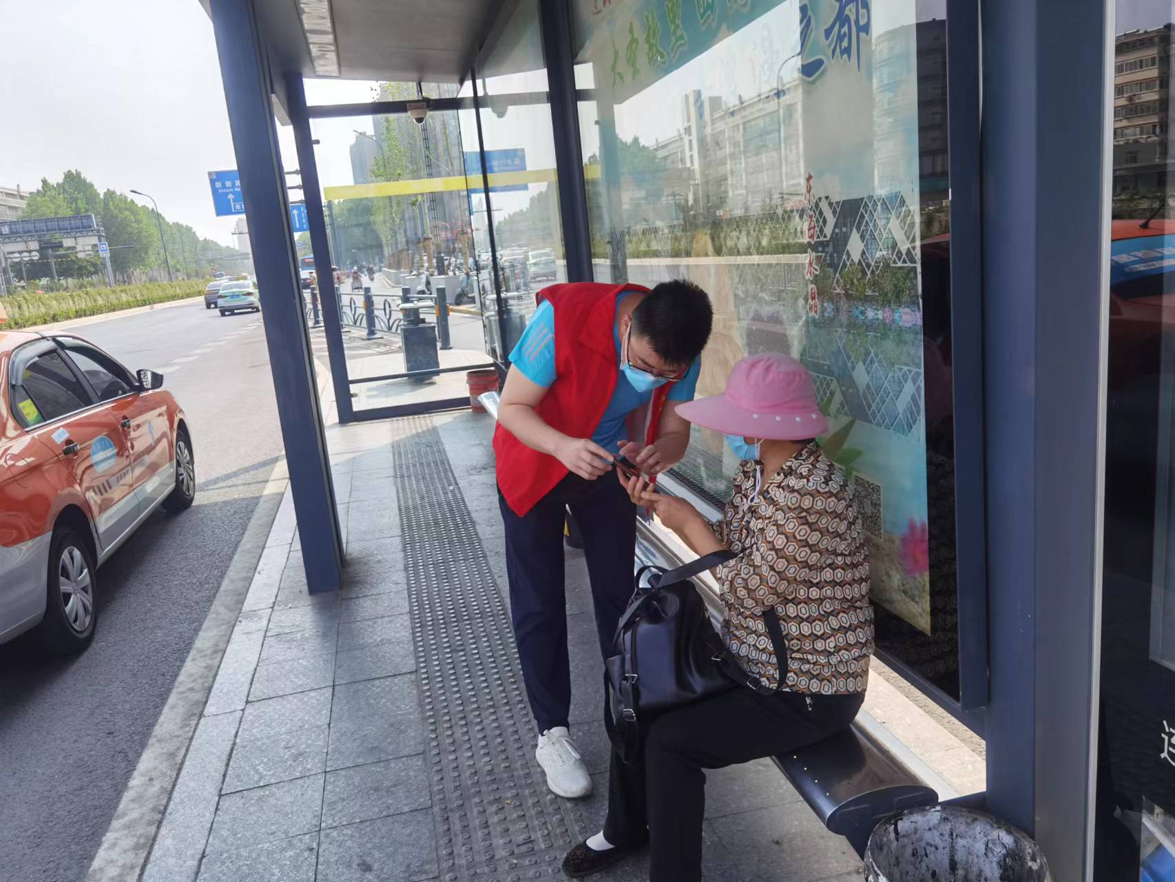“十一”黄金周首日,夏炎和同事们穿上志愿者的红马甲,早早赶到连云港市火车站602路、603路发车区前,开始了一天的工作。火车站的客流量大,不时会有从高铁上下来转车的乘客,夏炎需要在公交车门前协助驾驶员查验乘客的健康码、行程码、为乘客测量体温,遇到携带危险品、未佩戴好口罩的乘客需要进一步劝导。不会使用健康码、行程码的老年人,夏炎便不厌其烦的帮助解决。遇到老弱病残孕等行动不便的乘客,夏炎总能给予很多的关心,他的举动经常受到乘客的好评。