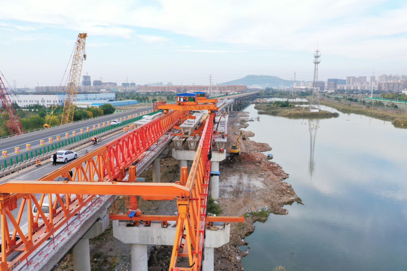 10月18日下午4时,一片长35米,重117吨的预应力钢筋混凝土预制箱梁精准吊装就位,连霍高速新墟互通新增匝道工程高速主桥拼宽段又一片箱梁架设成功。