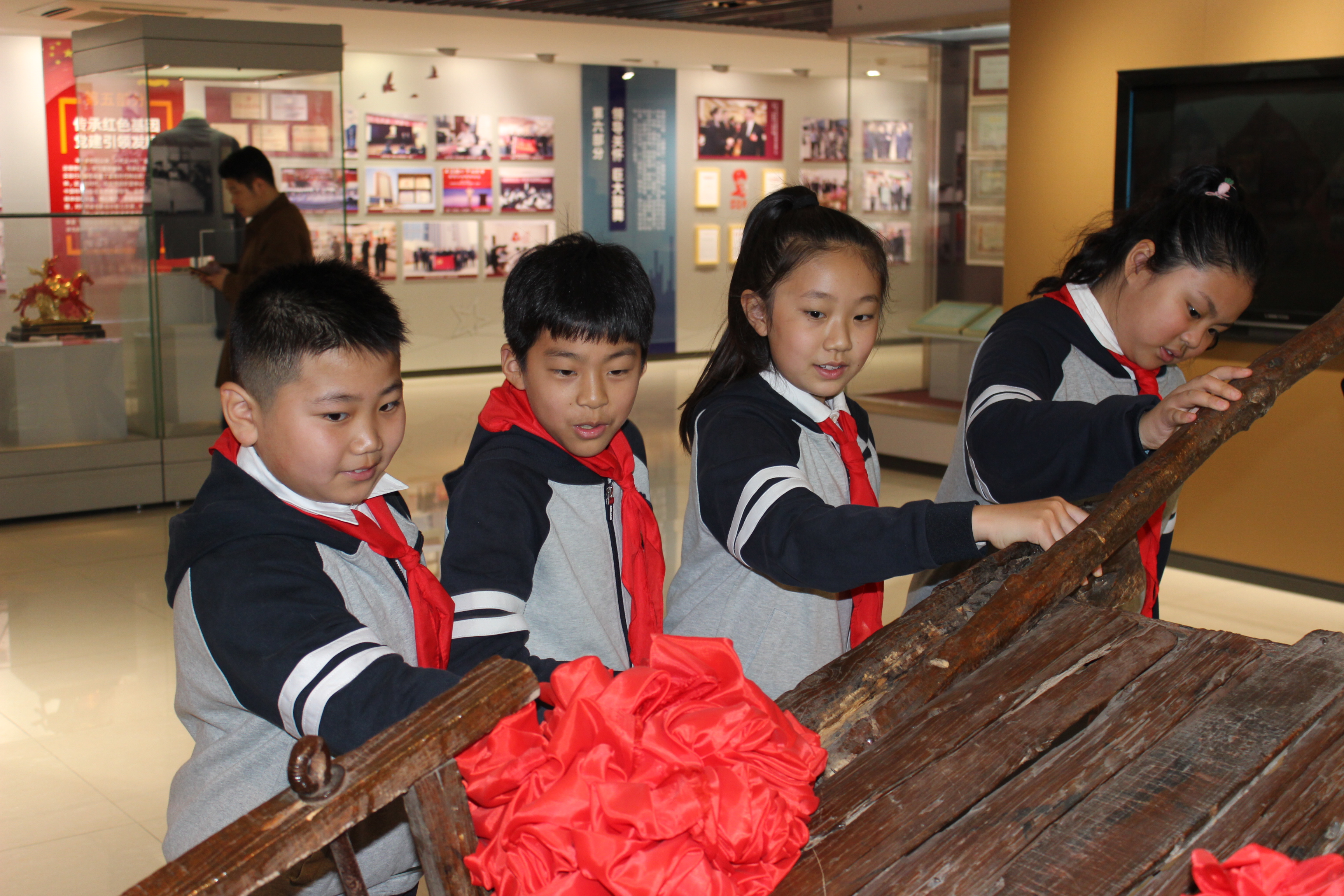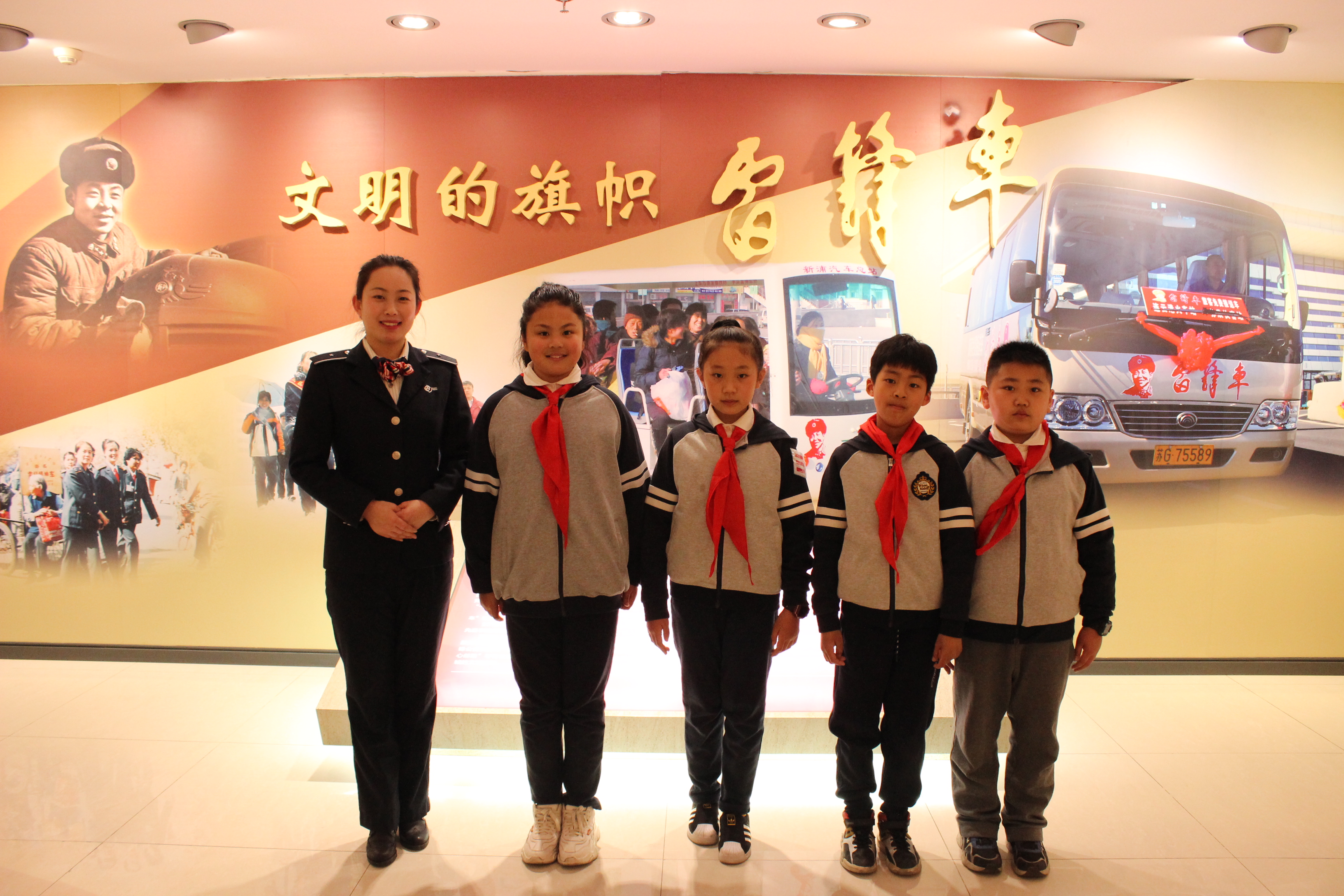 “学习雷锋好榜样,忠于革命忠于党……”——同学们唱着《学习雷锋好榜样》,排着整齐的队伍走进陈列馆,在“雷锋”同志的画像前敬少先队队礼以表崇敬。随后,同学们跟随着李园园的步伐,认真观看橱窗内的图片、资料和展品,用心去聆听“雷锋车”组姐妹们无私奉献、扶危救困的先进事迹。在李园园声情并茂的讲解下,一件件旧物、一张张照片变得鲜活起来。同学们触摸着被岁月抛光的平板“雷锋车”,纷纷表示,“雷锋车”组六代车手59年坚持学雷锋的事迹让人震撼,雷锋车“宁愿自己千般苦,不让旅客一时难”的精神让人感动,并表示要向“雷锋车”组的阿姨们学习,争当帮助他人,乐于奉献的时代好少年。