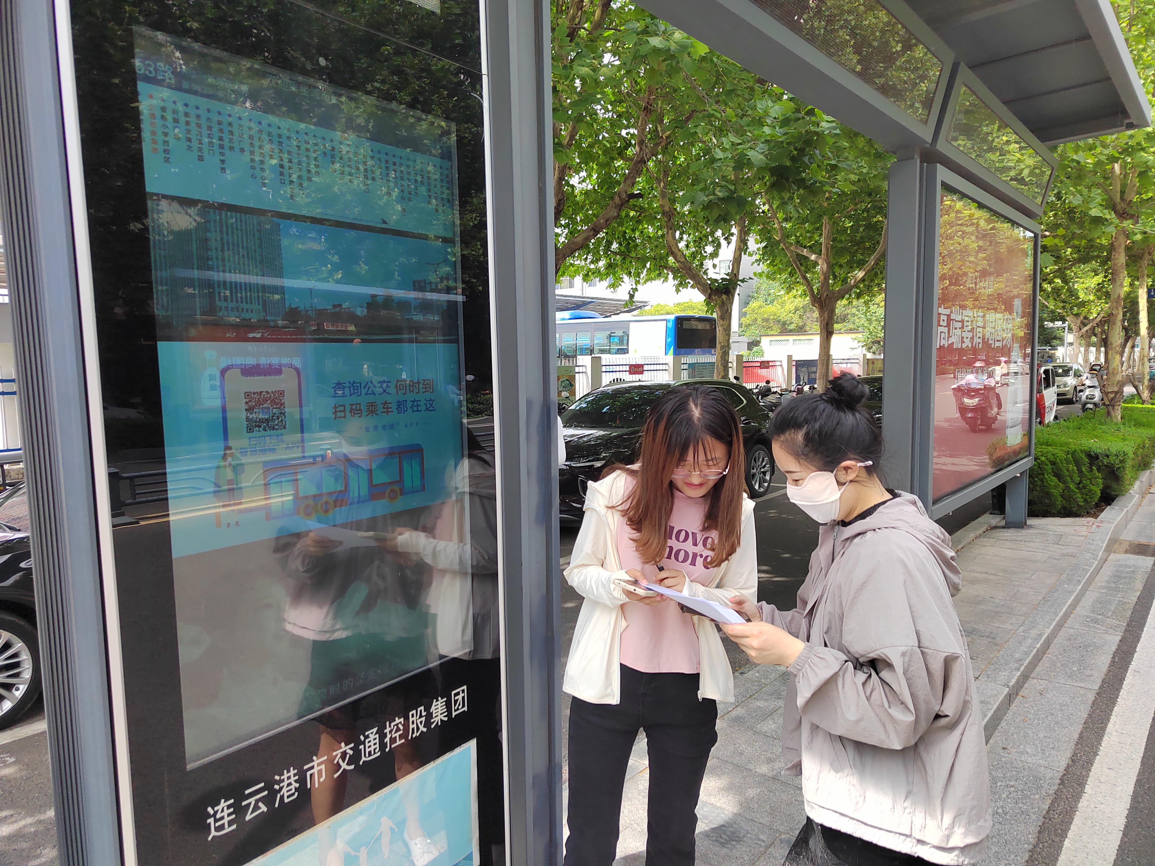 77日上午开始,在技术部总监林伟的统筹安排下,部门各员工前往各自负责的站点,在36度高温天气中检查电子站牌显示信息。对照“智慧港城”APP,查看到离站信息是否一致;在车辆进站时记录进站时间,并将线路名称、车牌号等相关信息一一统计。