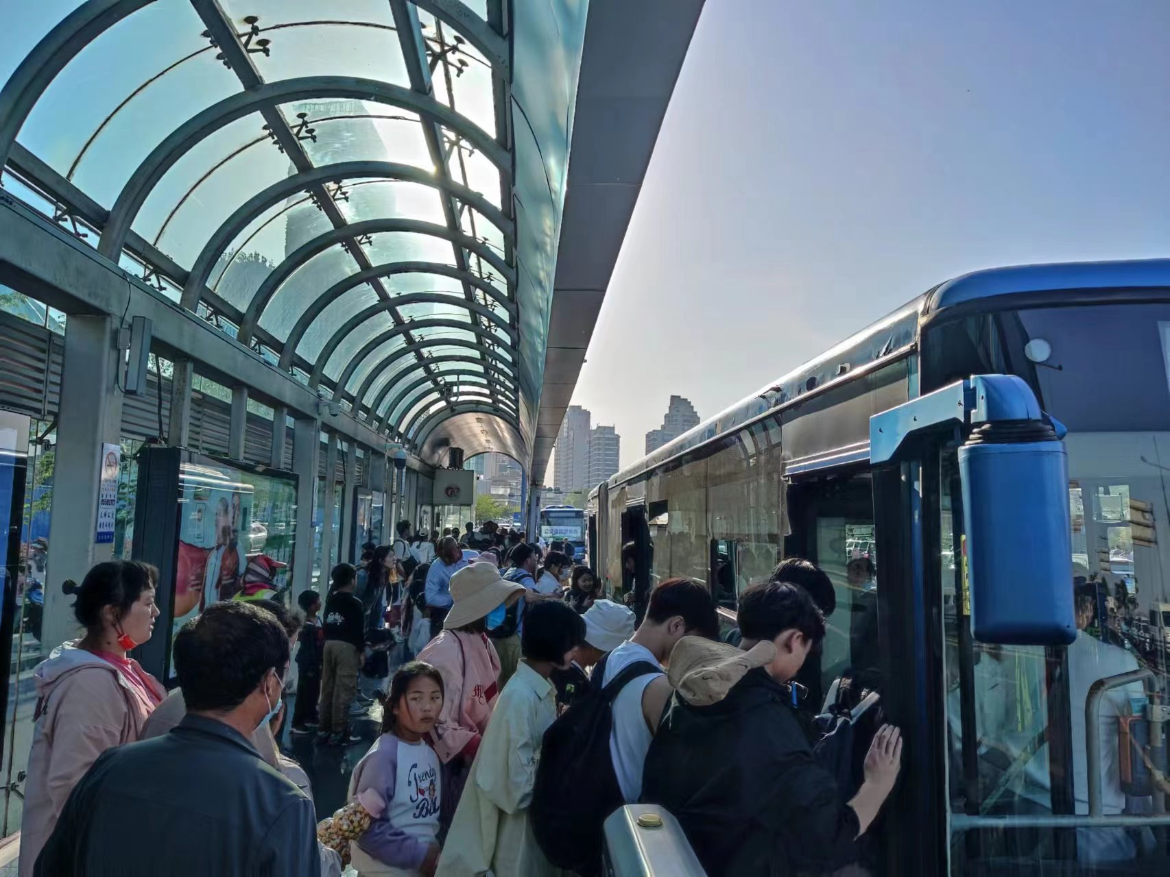 五一期间,公交世界杯app最新版下载,世界杯(中国)积极响应旺季交通疏解文件要求,提前谋划,静心部署,通过制作应急预案,现场多次推演,结合各点位人员全天候现场调度和巡查、后台智能化监控、加密班次、驾驶员超负荷在岗流水线发车等保障措施避免了花果山景区大量人流聚集和平安接驳。期间累计投放运力达163台次,发送总班次达2465班,运送客流达14.83万人次,组织70余名志愿者现场为四面八方的游客提供咨询、引导和转接驳引导服务。接驳期间,帮助5名安徽游客44分钟内高效准点送至高铁站安全到家并收到感谢信;帮助外地游客找回丢失的手机收到12345市政府服务热线的表扬单;帮助南京游客找到丢失的笔记本电脑;扶老携幼的事例更是数不胜数。