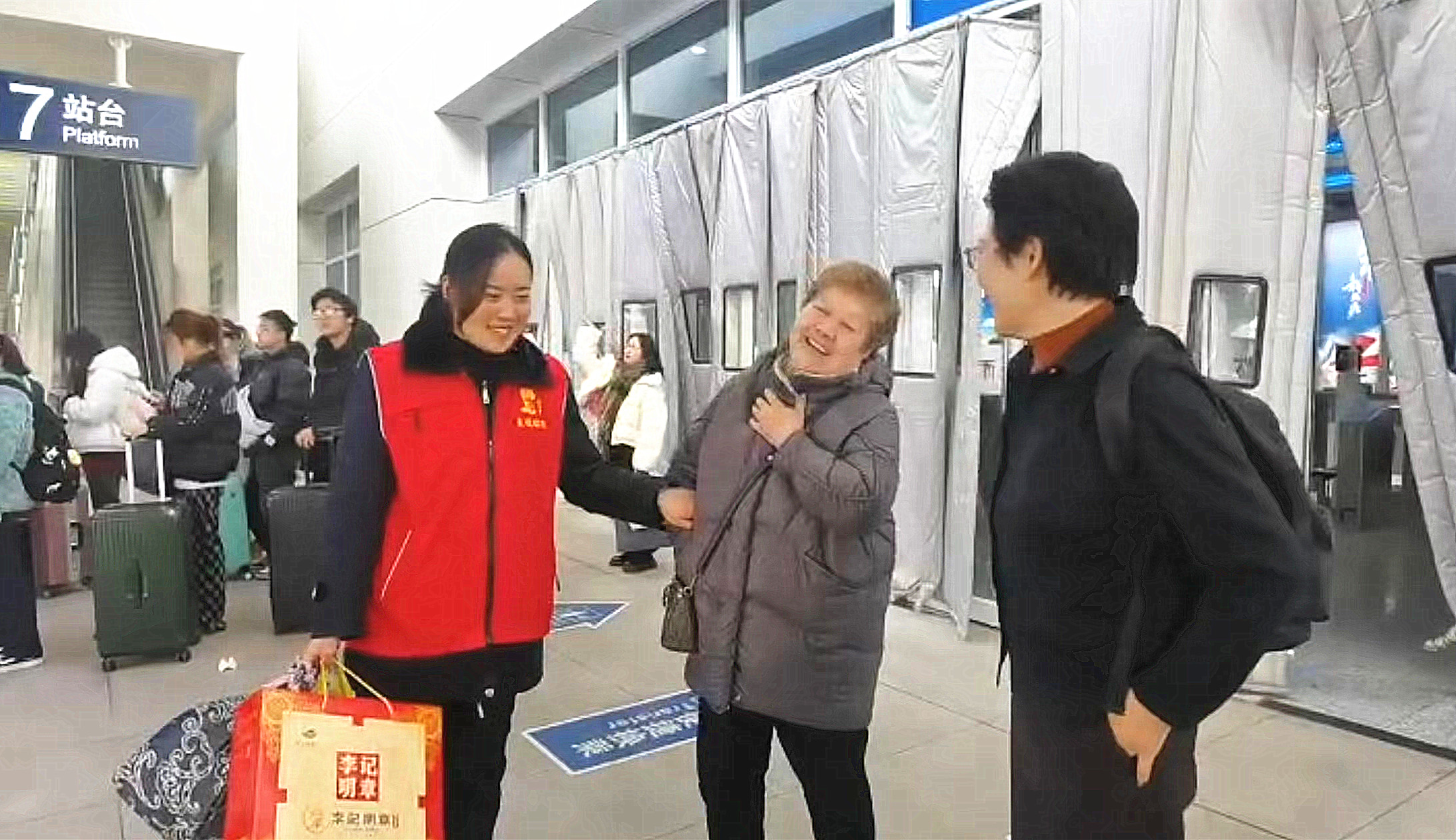 临别时,两位旅客激动地说“太谢谢你们了!多亏有你们帮忙,要不然我们肯定赶不上车了!”“我双腿膝盖都做了半月板手术,要不是你搀着我,我就跟不上了!太谢谢你们了!雷锋车’真的太好了!”