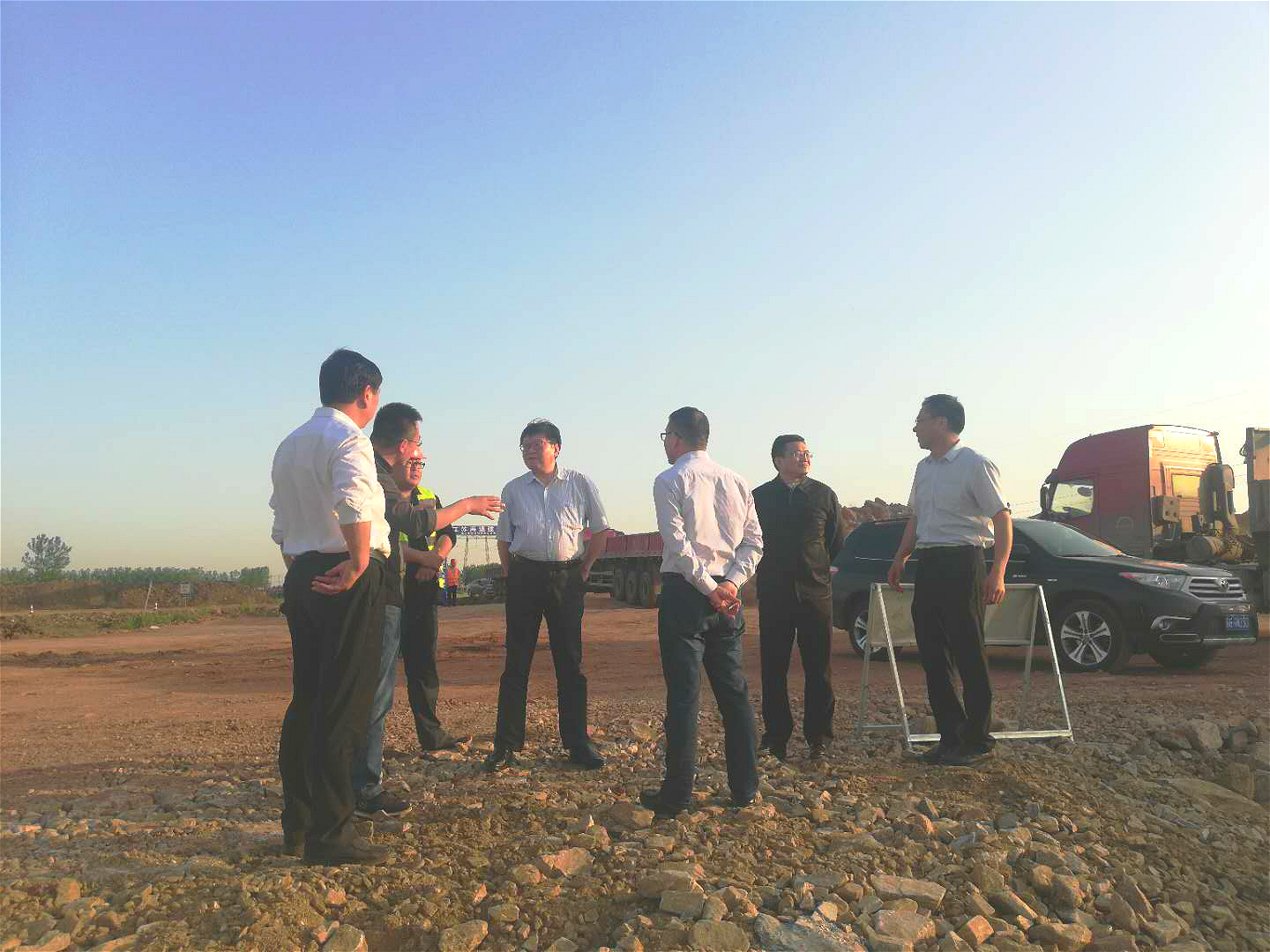 刘永能先后查看了园区内沥青拌合站、储料大棚建设、试验室建设、项目部办公生活场所,询问了基地建设、施工进度等相关事宜,并听取了现场汇报。