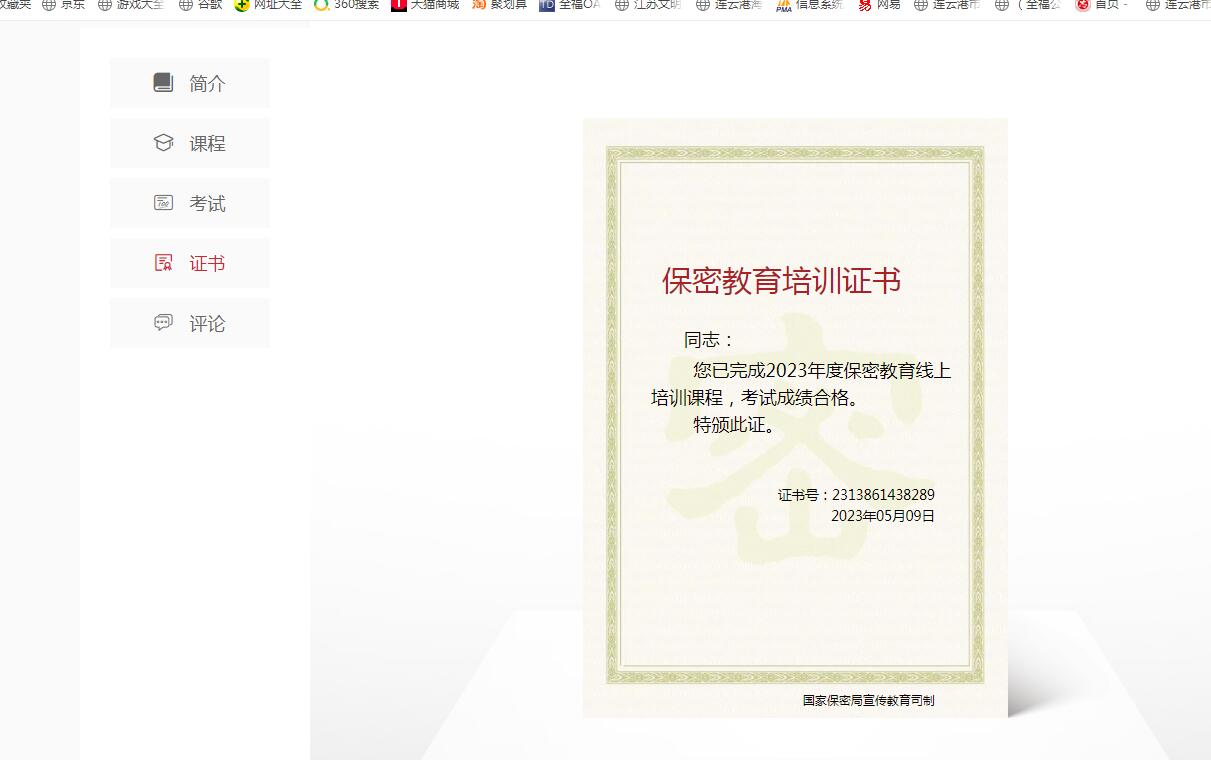 在培训中,办公室人员通过在电脑上打开“中国保密在线”网站,在线学习保密优良传统、保密法律法规、保密基础知识、保密技术防范等一系列的视频和音频,完成相应的课程学时后参加线上测试。经过努力学习,办公室人员均获得了保密教育培训证书。