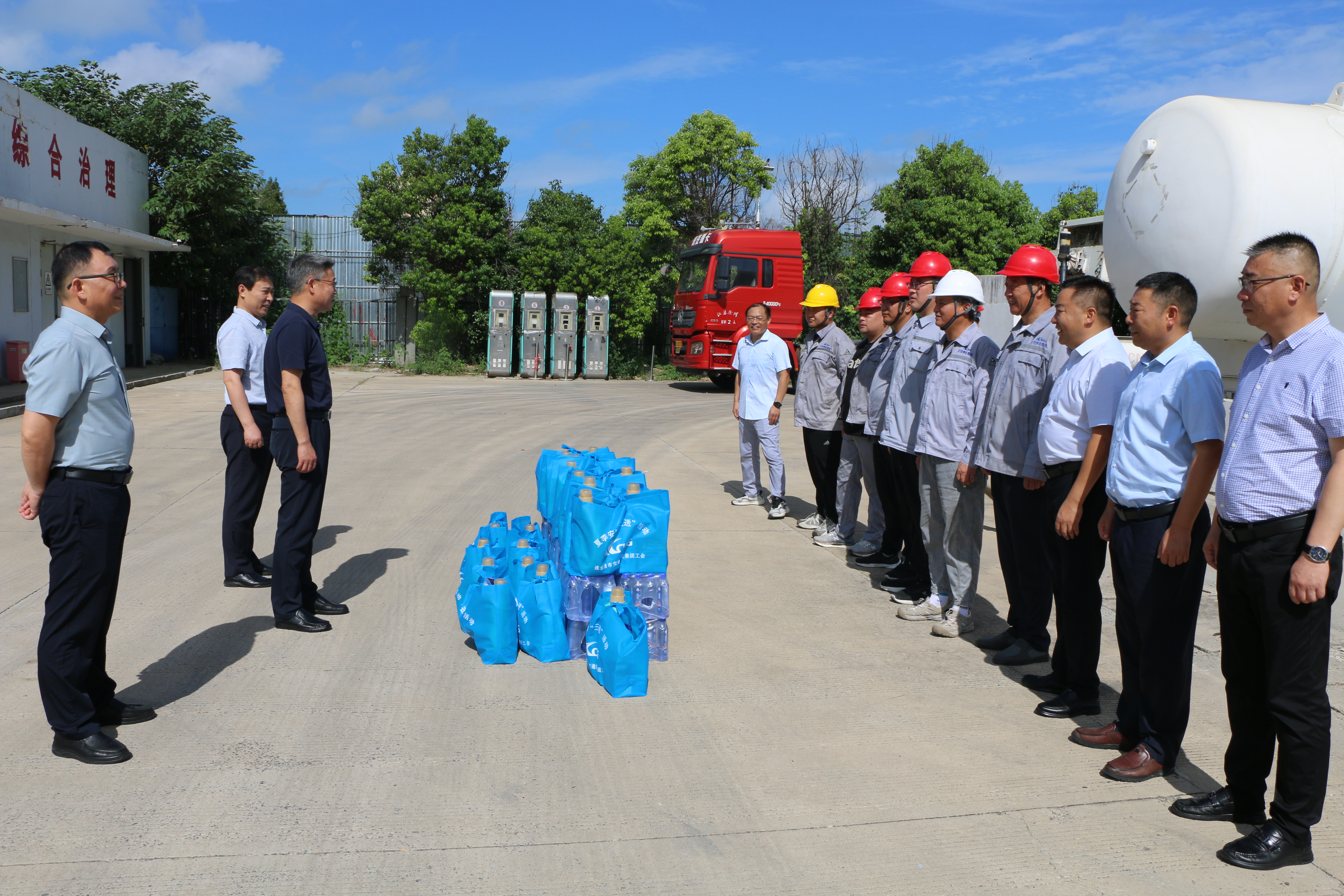 时至盛夏,酷热难耐。7月26日,交通控股世界杯app最新版下载,世界杯(中国)党委书记、董事长仲伟涛,党委副书记、工会主席陈金师,工会副主席茅红兵、孙华一行到物流世界杯app最新版下载,世界杯(中国)权属加气站开展“送清凉”走访慰问活动,为奋战在高温一线的职工送去防暑降温慰问品及组织的关怀和问候。物流世界杯app最新版下载,世界杯(中国)党委书记、总经理张国兴,副总经理、工会主席刘超,总经理助理王高林参与慰问。