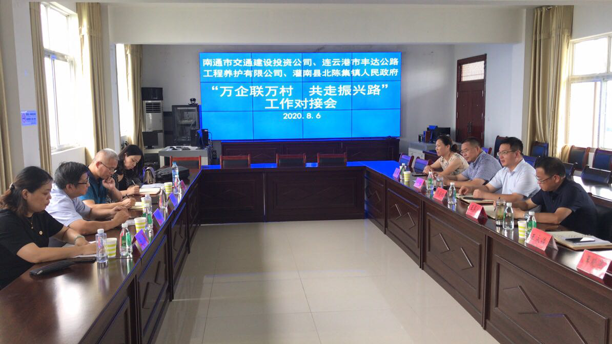 为积极服务乡村振兴战略,8月6日,丰达养护公司与南通交通建设投资公司、灌南县北陈集镇人民政府在灌南县北陈集镇召开了“万企联万村,共走振兴路”工作对接会。南通交通建设投资公司副书记张燕滨、丰达养护公司总经理王梁洲和北陈集镇人民政府党委书记周倍良等相关人员参加了会议。
