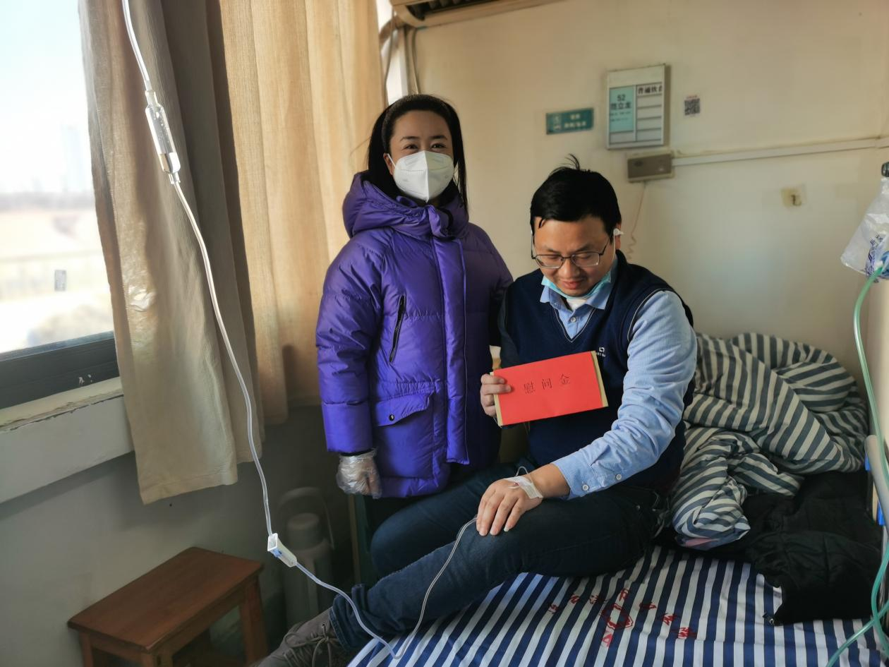 1月8日上午,交建分公司组织开展节前慰问关怀活动,看望生病住院的职工,送去“娘家人”的关心与关爱,并对其在寒冬季节一直坚守一线的辛勤付出表示肯定。