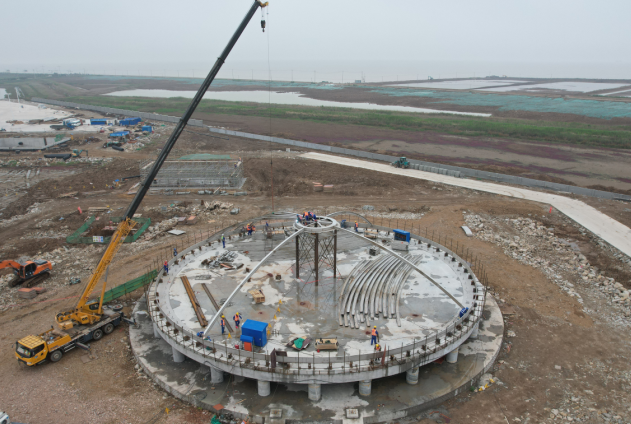 5月27日,储配站项目LNG储罐径向梁“首吊”顺利完成,这标志着该项目2万立方米LNG储罐正式进入主体施工新阶段。