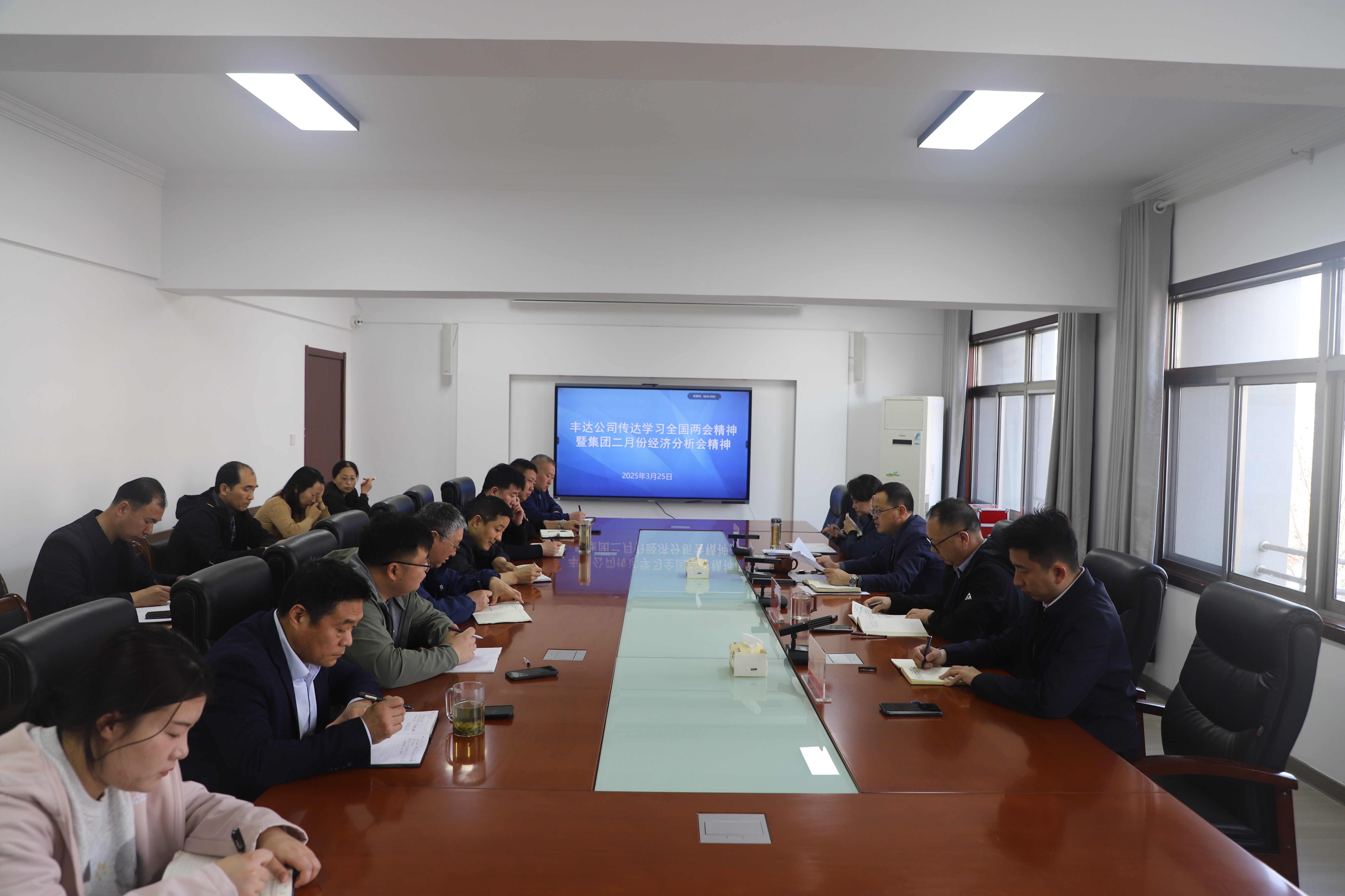 3月25日上午,丰达公司召开学习宣传贯彻全国“两会”精神和传达世界杯app最新版下载,世界杯(中国)二月份经济运行分析会精神会议,丰达公司领导班子成员、各单位负责人、各部门负责人共计15人参加会议,会议由公司党总支书记、董事长王梁洲主持。