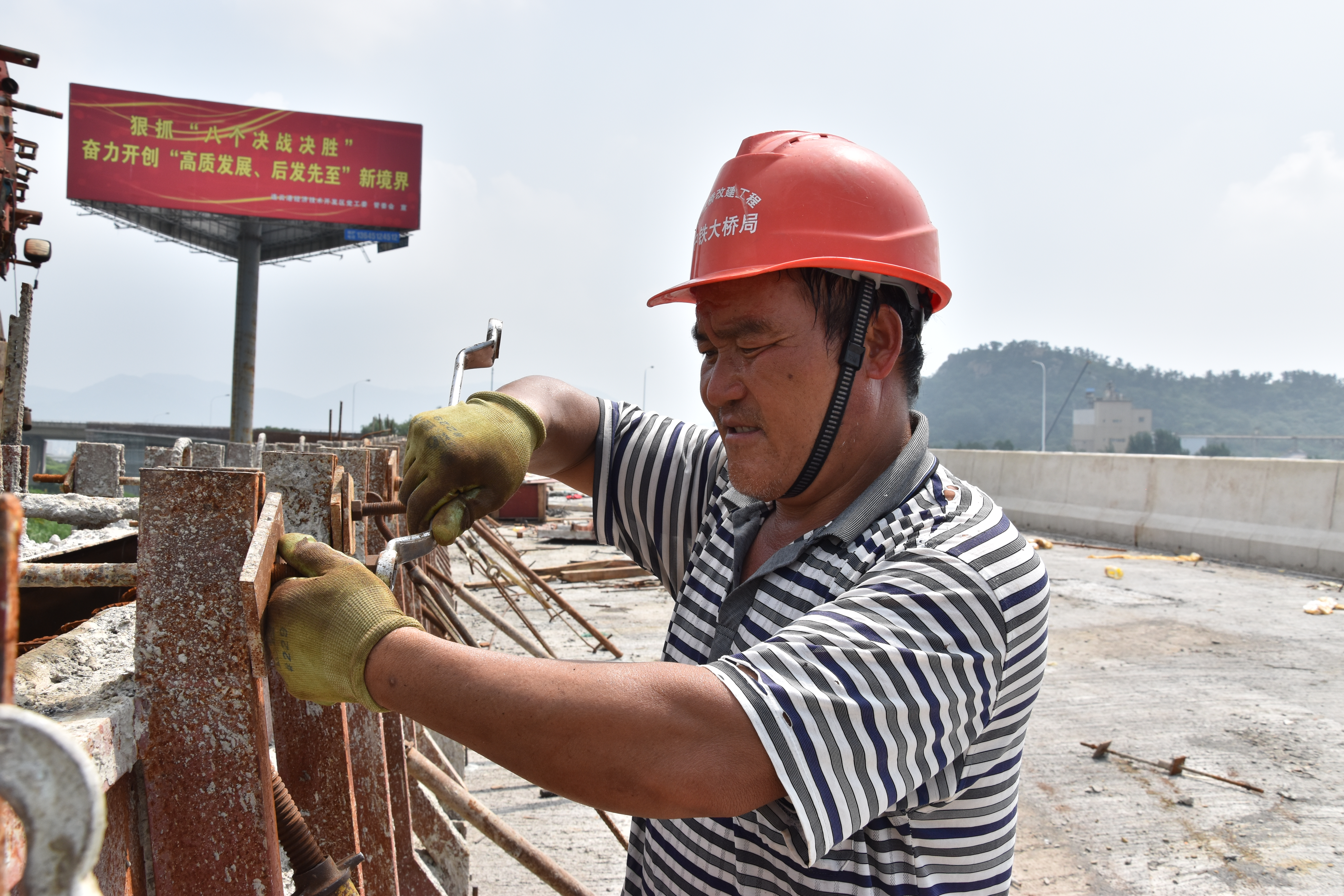 8月11日,正在连霍高速新墟互通项目工地施工的工人们冒着30度以上的高温,用汗水浇筑互通匝道,严保工程施工进度。