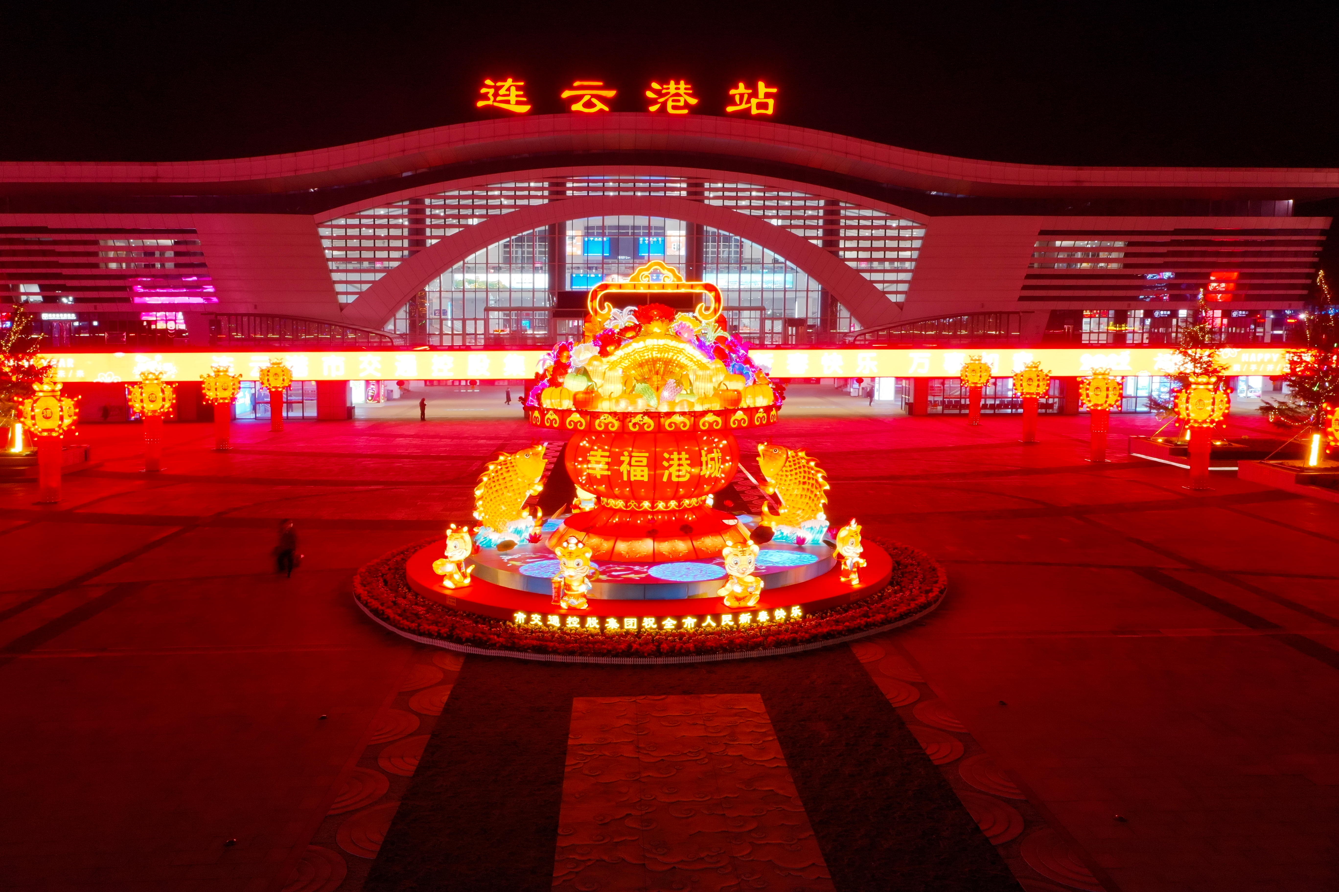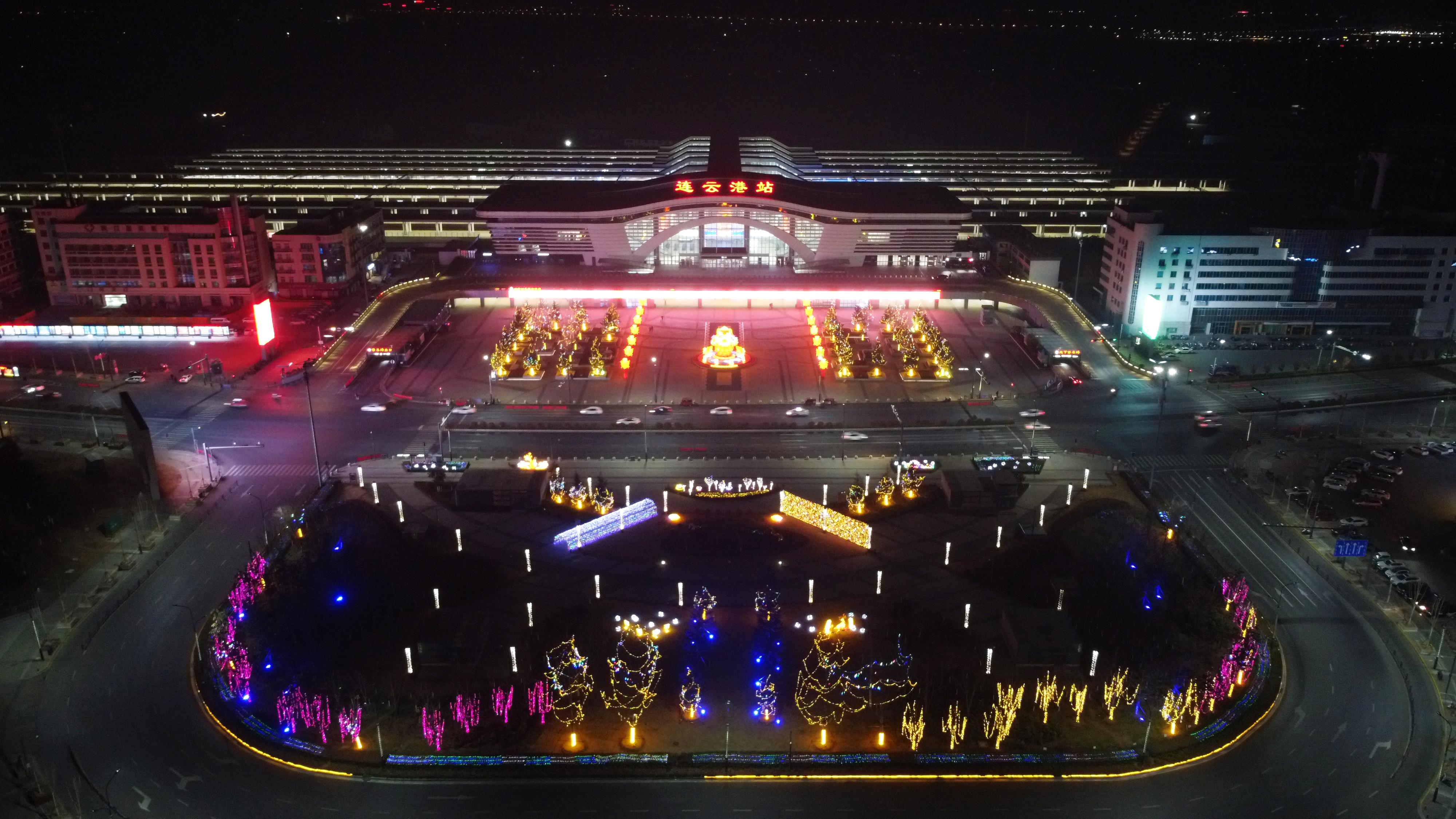 1月18日,连云港综合客运枢纽春节亮化完工,流光溢彩、璀璨跃动的夜景打开了城市窗口的“春节模式”——“四九”寒冬的连云港,浓浓的“年味儿”随风飘来。