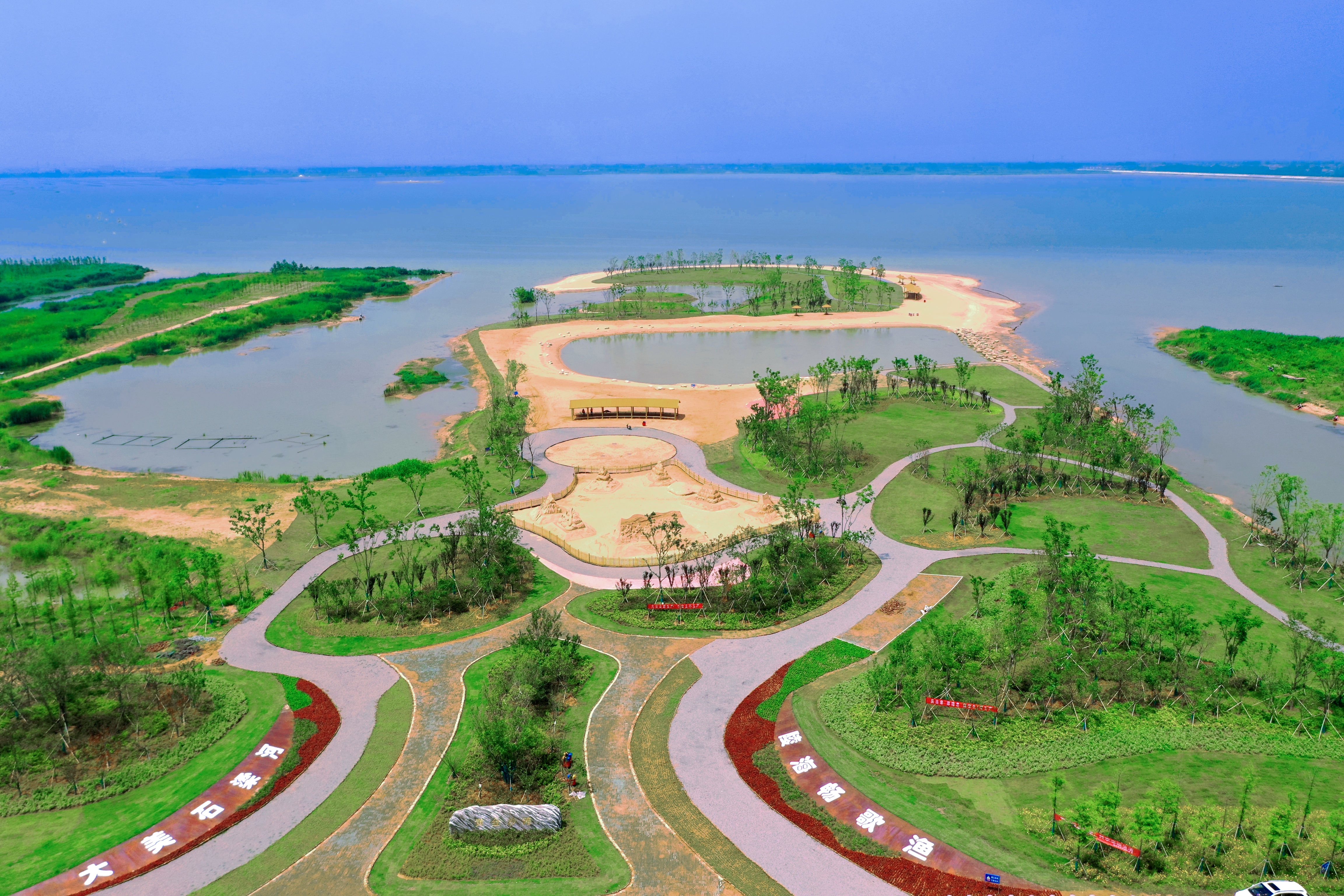 6月20日,石梁河水库黄金沙滩亮相,库区生态修复二期工程首个项目完工投用,石梁河再添壮美景点。