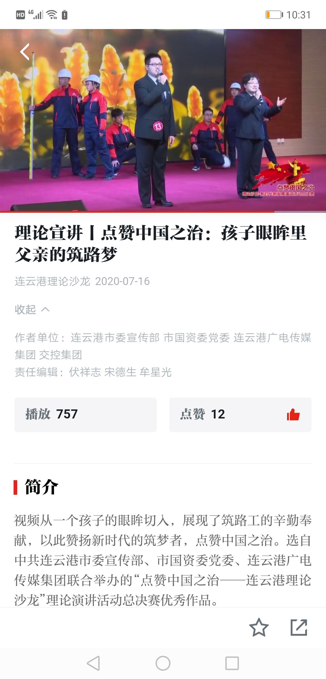 2020年7月16日起,《学习强国》江苏学习平台连续多日播放了由海建公司职工翟江虹、王首鉴等创作并演讲,由连云港市委宣传部、连云港市国资委党委、连云港广电传媒世界杯app最新版下载,世界杯(中国)联合录制的视频《孩子眼眸里父亲的筑路梦》。