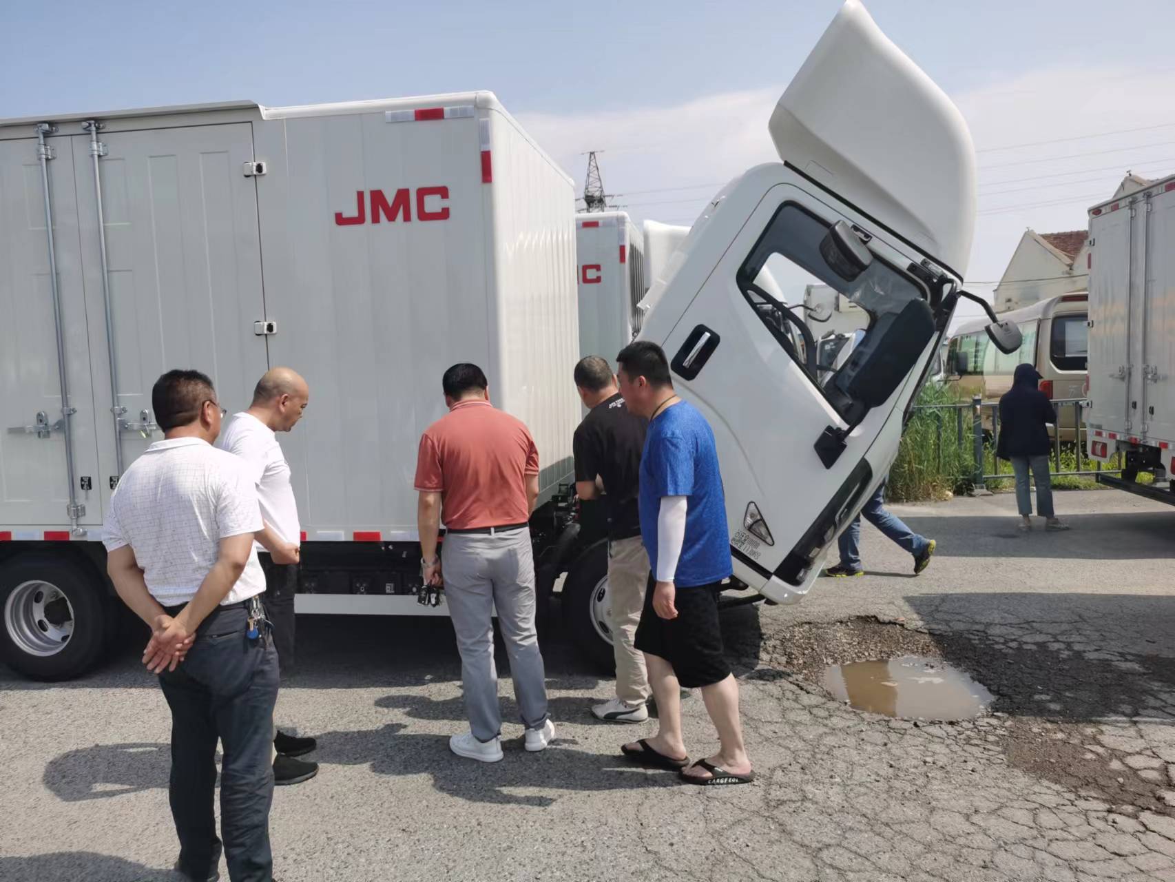 连云港城市绿配物流有限公司是汽车公司全资子公司,目前拥有5辆冷链车辆,1辆4.2米柴油车辆。为响应连云港市城市绿色货运配送示范工程创建实施方案》(连政办〔2023〕2号)按照相关流程,绿配公司计划7月购置新能源货车25台,该批车辆已于7月9日到达苏港检测线。公司安全机务部主要负责人全程参与指导工作。绿配公司一方面安排人员办理车辆税务登记,另一方面与连云港汽服江铃4S店唐经理沟通,对车辆开展验车和车辆交接手续。25台新能源车辆已于7月12日完成上线检测和落户上牌工作,随时投入运营。