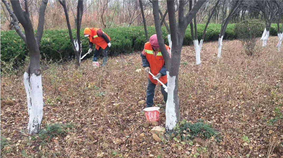 树木冬季涂白是一种传统的树木管理技术,主要作用是避免树体日烧、日灼现象的发生,减少来年病虫害发生几率,可有效降低病虫害防治工作量,还能防止牲畜啃食树木,保护树体。同时,通过对枯萎的树枝进行修剪更是保障了来往车辆及行人的出行安全。