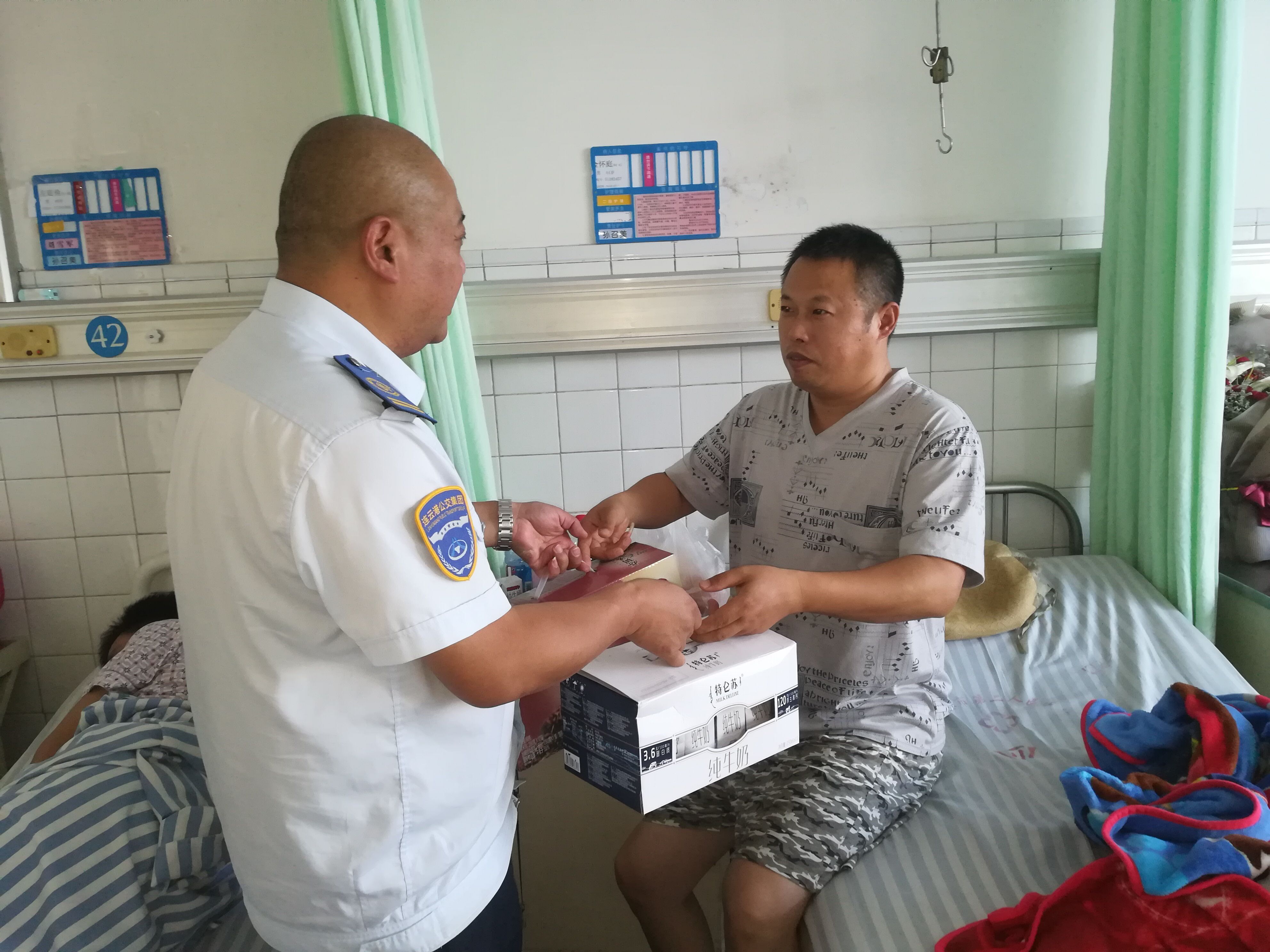 8月13日,公交世界杯app最新版下载,世界杯(中国)海通公交分公司经理丁文和带领管理人员一同来到海州区第二人民医院,看望生病住院驾驶员金怀庭,为他送去了公司的问候和关怀。