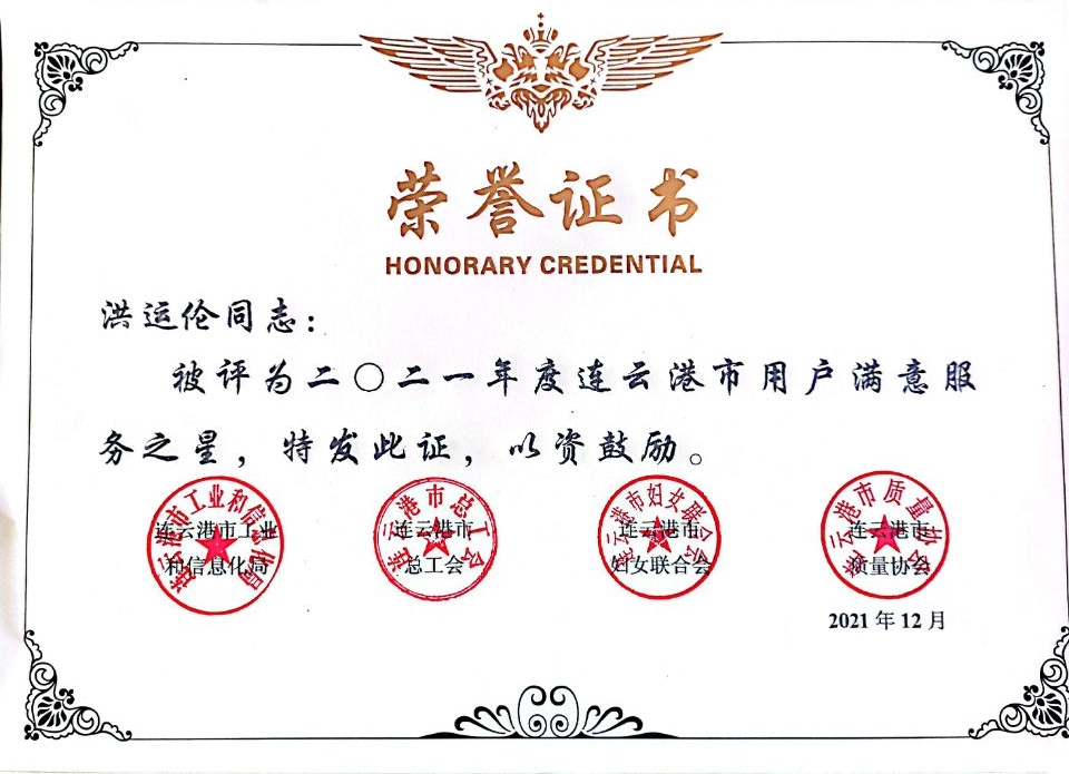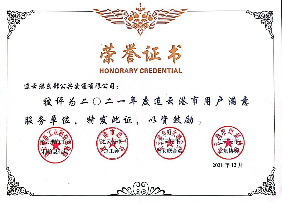 近日,公交世界杯app最新版下载,世界杯(中国)公交事业二部(原东部公交)荣获由连云港市工业和信息化局、市总工会、市妇女联合会、市质量协会联合颁发的“2021年度连云港市用户满意服务单位”荣誉称号;公交事业二部洪运伦荣获“2021年度连云港市用户满意服务之星”称号。