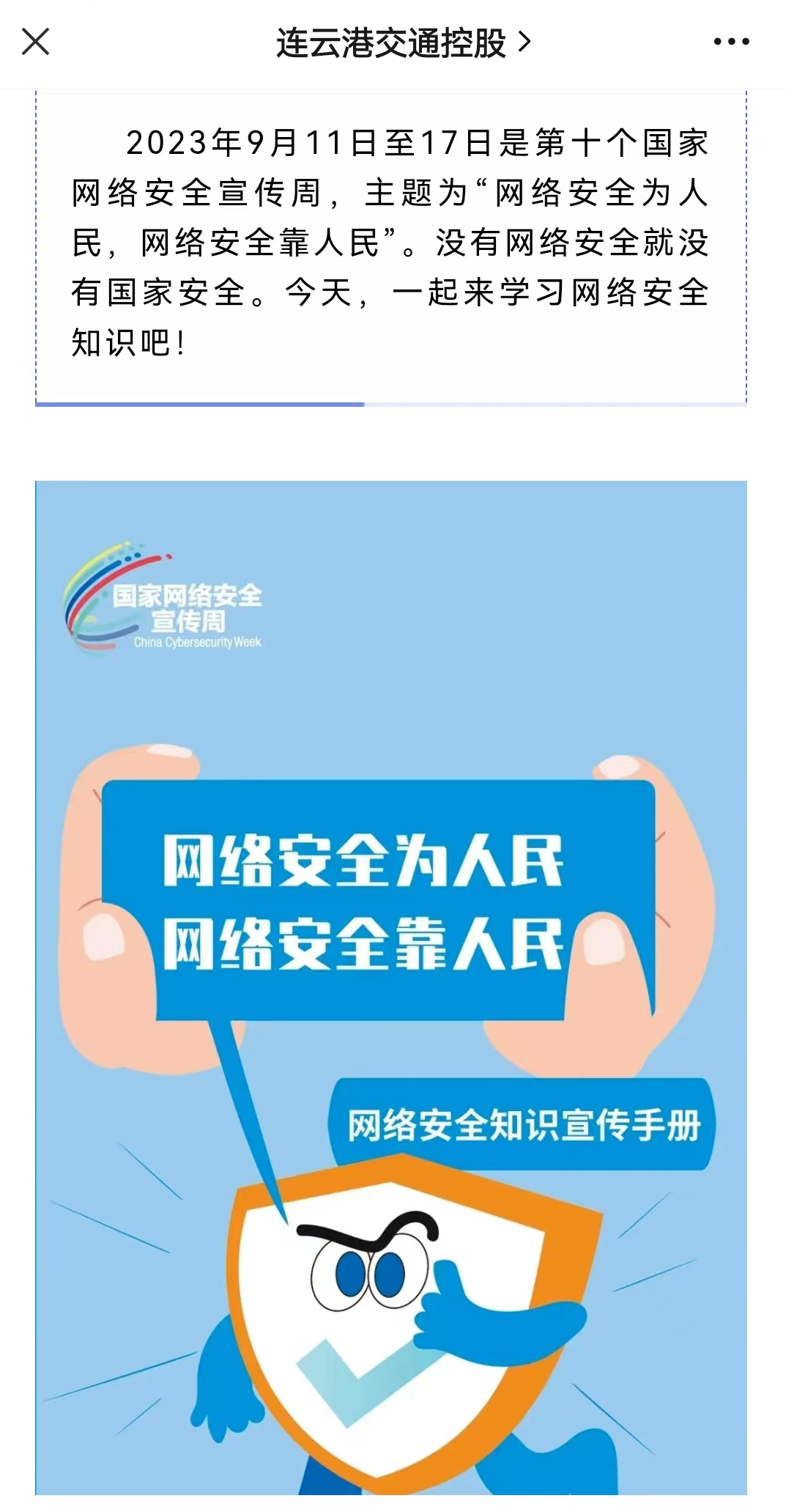 9月11日至17日,是第十届国家网络安全宣传周。活动期间,世界杯app最新版下载,世界杯(中国)积极营造宣传氛围,通过“线上+线下”相结合的方式,发挥交通产业优势,普及网络安全知识,提高全民网络安全防范意识和应对能力,助力2023年度网络安全宣传周活动顺利开展。