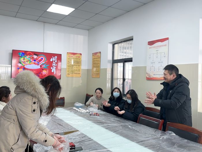 活动现场挂满了工作人员精心准备的五颜六色的谜面卡片,工会主席吴寒给大家介绍了元宵节的来历,让大家进一步了解元宵节传统习俗。随后,大家一起开始动手制作汤圆,取一小块面团放在手心,把面团压扁,再轻轻放上黑芝麻馅,然后把面团向中间捏紧,再放手心搓一搓,一个汤圆就完成了。不一会儿,一个个白白胖胖的元宵就摆满了桌面。锅中开水沸腾,元宵在水中翻滚,大家其乐融融地一起品尝元宵。活动现场氛围浓烈,汇聚着欢声笑语。