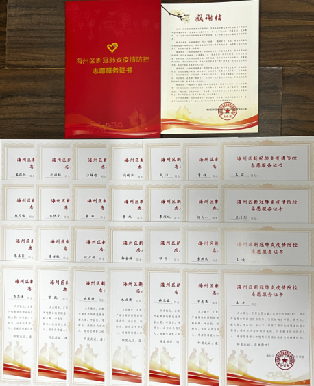 近日,物流世界杯app最新版下载,世界杯(中国)28名志愿者收到来自海州区新冠肺炎疫情联防联控指挥部办公室、幸福社区送来的志愿服务证书,对物流世界杯app最新版下载,世界杯(中国)给予疫情防控志愿服务工作表示衷心感谢。