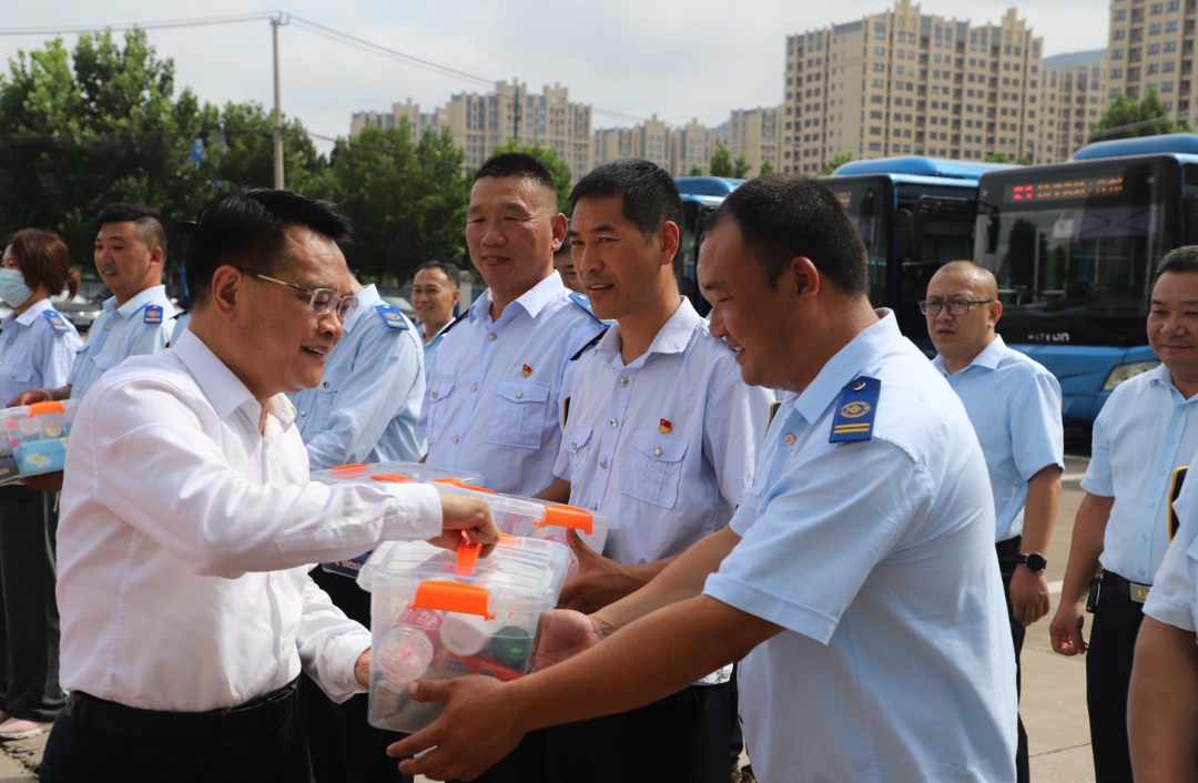 7月31日,市人大常委会副主任、市总工会主席王家全一行赴世界杯app最新版下载,世界杯(中国)新华公交总站开展“夏日送清凉”活动,为一线工作人员送来了防暑降温用品。交通控股世界杯app最新版下载,世界杯(中国)党委书记、董事长仲伟涛,党委副书记、工会主席陈金师陪同慰问。