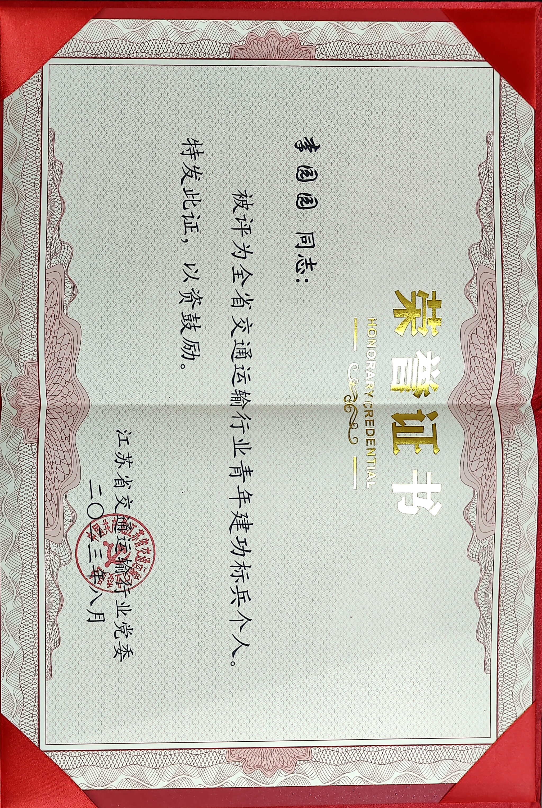近日,江苏省交通运输行业党委通报表扬全省交通运输行业青年建功标兵团队和青年建功标兵个人,汽车公司新浦汽车总站“雷锋车”手李园园被授予“全省交通运输行业青年建功标兵个人”称号。