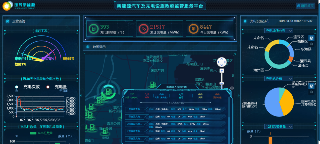 交控数据中心(新能源运营监管中心),从开始立项到结束,初步按照计划完成进度。4月份完成UI 界面的设计,5月份完成新能源前端功能模块的开发,6月份至7月中旬完成新能源接口的对接,7月底前完成新能源子系统的功能测试和调试,经过上个星期的初步上线,整个新能源部分已经进入验收阶段。