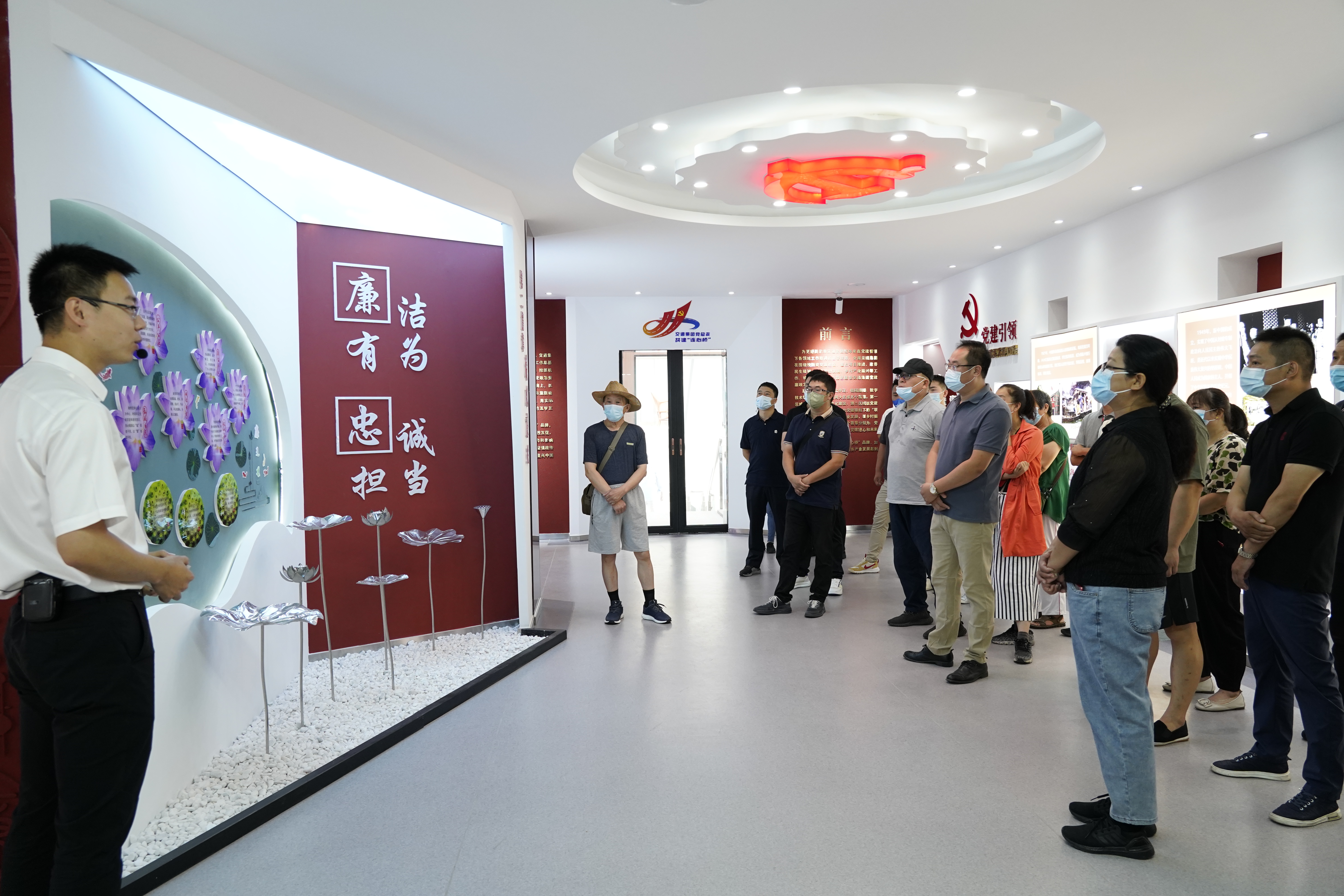 交通世界杯app最新版下载,世界杯(中国)党建廉政文化展厅专门设计了“廉与家”主题板块,运用莲花的“莲”字谐音廉洁的“廉”字,将莲花和莲蓬具体化,用“莲花”展现公平公正、诚信务实、俭以养德等关于作风建设的成语,用“莲蓬”展现树家风、立家规、传家训和筑家和等贴近大家生活的理论。同时,运用不同廉字的字体和金句打造了一面“廉字墙”,并在中间悬挂“清正廉洁”的印章。通过“清风廉政”这一板块的讲解和学习,不断教育和引导产业园区商户群体知敬畏、存戒惧、守底线,严以律己、严以修身。