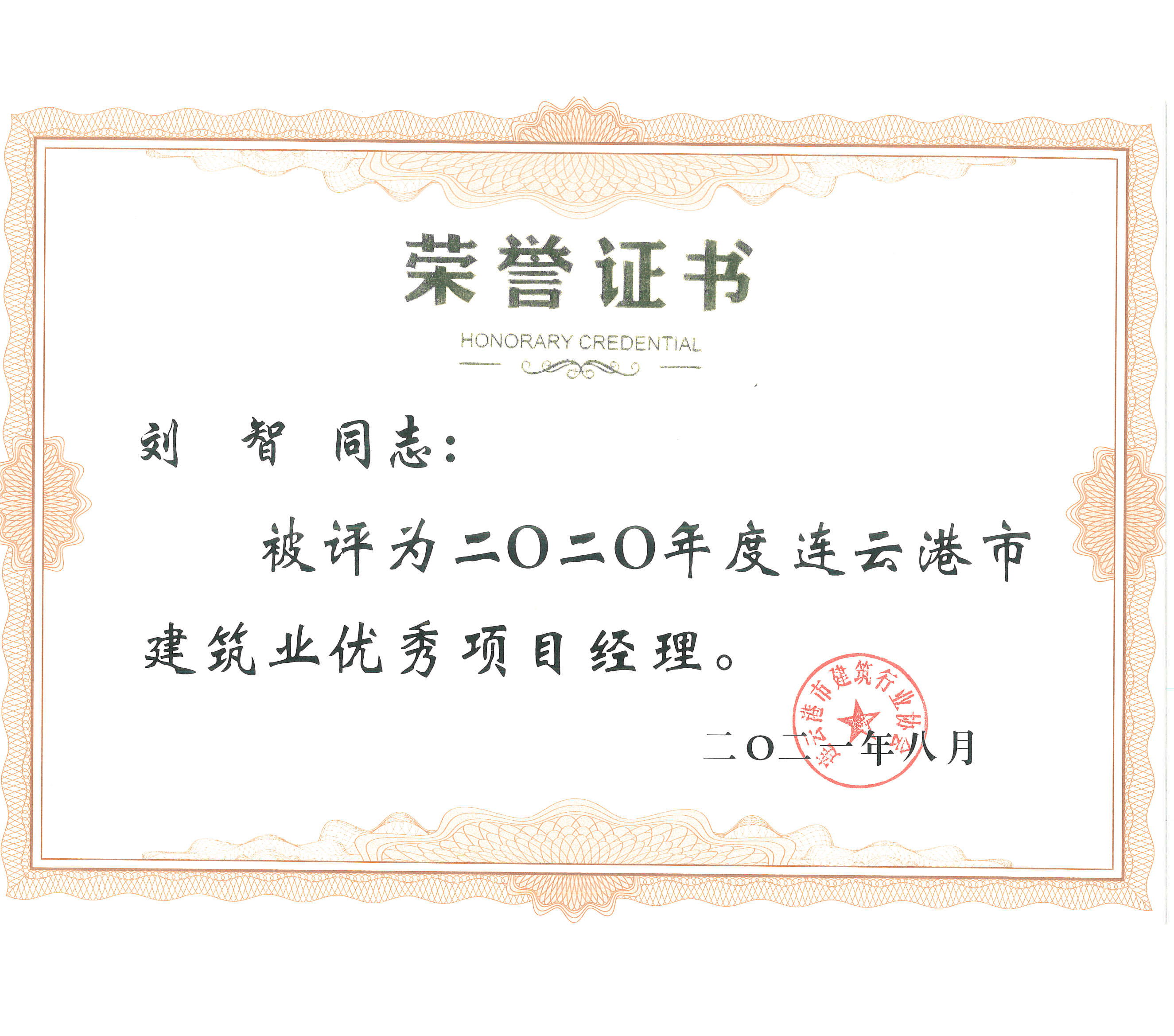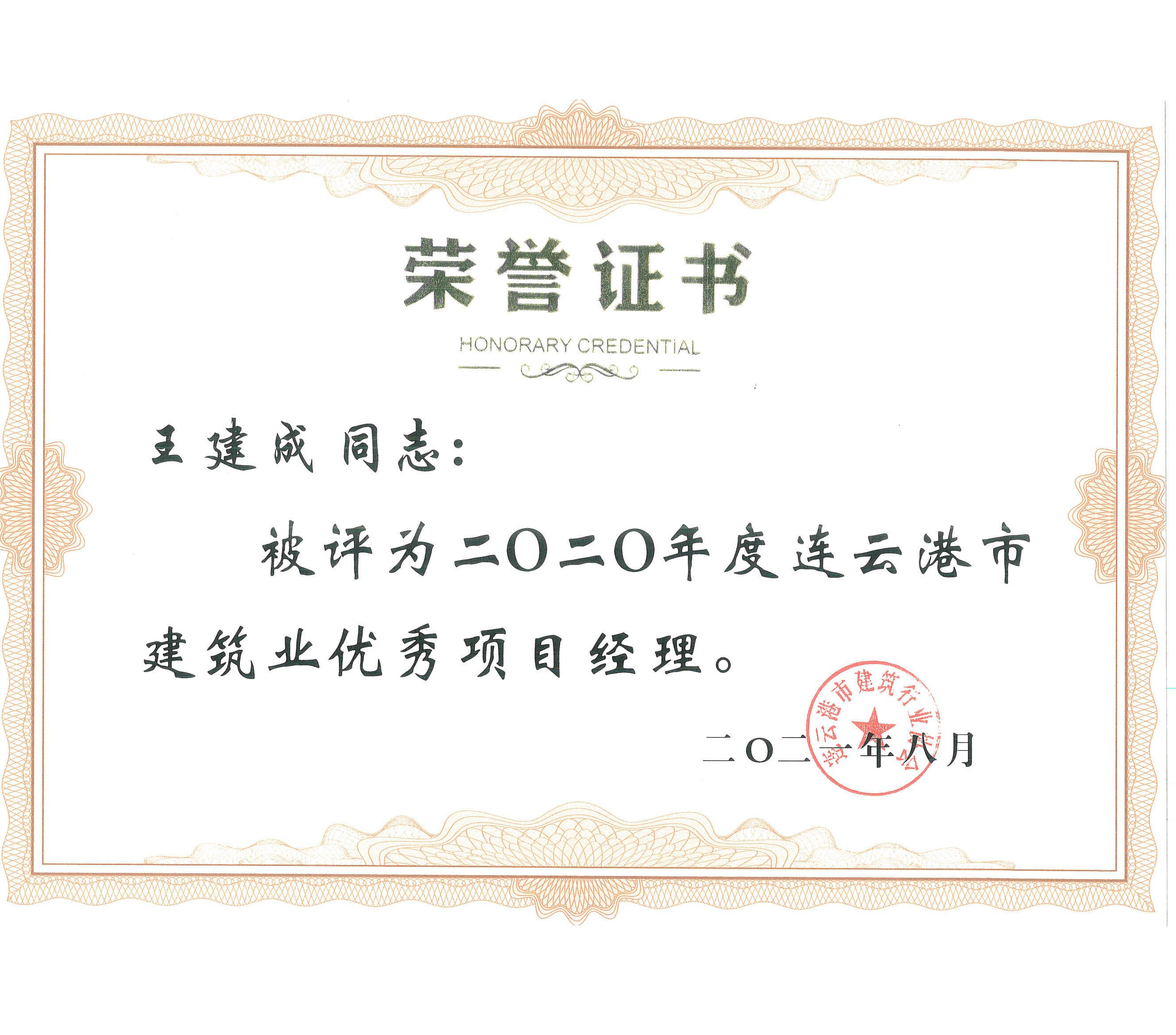 此外,公司董事长、党委书记仲济强被评为“2020年度连云港市建筑业优秀经理”,刘智、杨城、徐进、王建成被评为“2020年度连云港市建筑业优秀项目经理”。