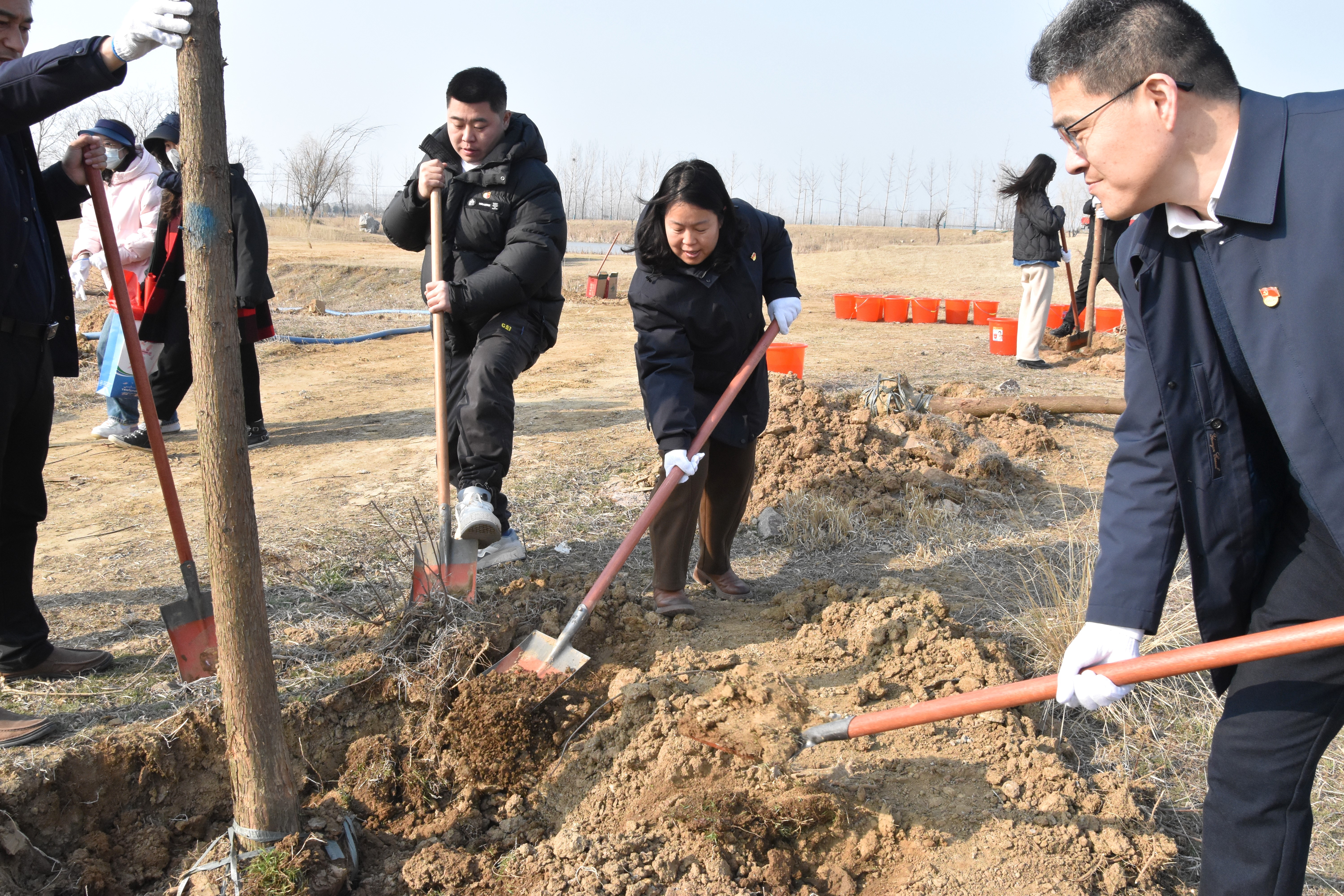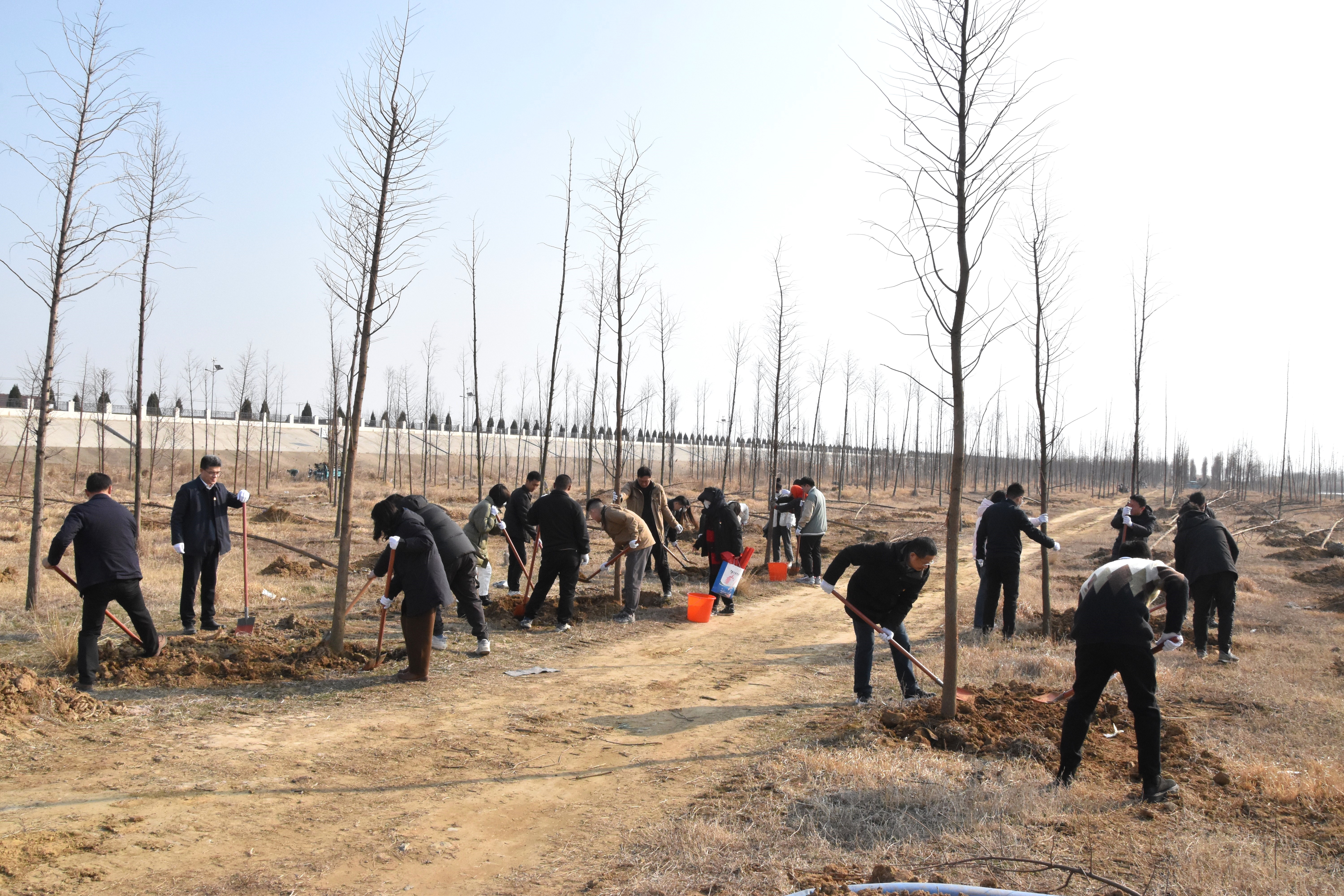 新春添新绿,植树正当时。在活动现场,志愿者们两三人一组,扶正树苗、挥锹培土、填坑浇水,干劲十足,气氛热烈,呈现出忙碌而有序的劳动景象。经过2个多小时分工协作的挥汗奋战,共栽下池杉40余棵。阳光下,新栽的一颗颗小树苗迎风挺立、生机勃勃,志愿者们以行动为库区生态环境贡献了实际力量。