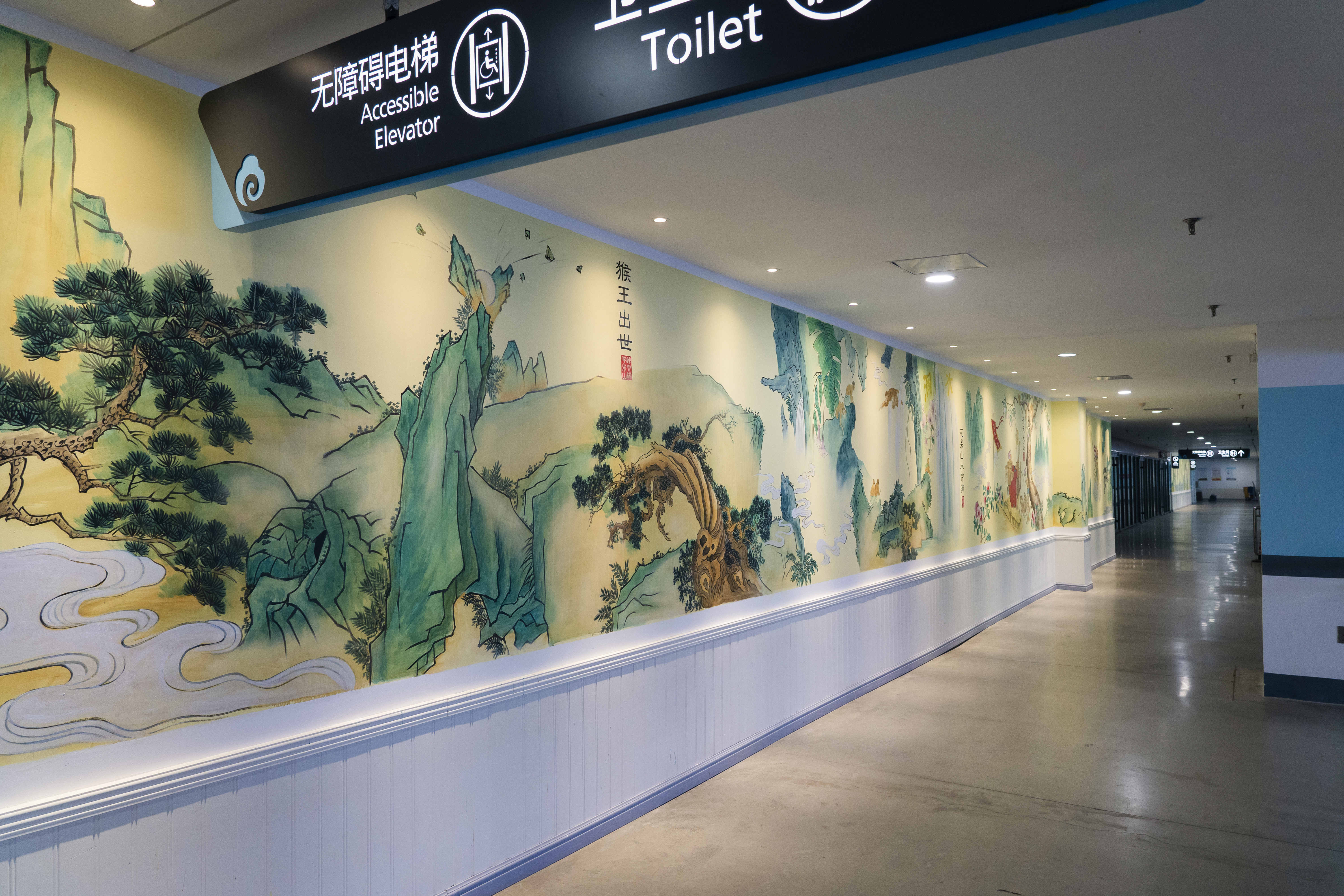 用经典名著元素让地下停车场“动”起来,让综合客运枢纽“靓”起来,让出行旅客“忆”起来,让城市底蕴“活”起来,是交通世界杯app最新版下载,世界杯(中国)本次策划制作西游壁画的初衷。交通世界杯app最新版下载,世界杯(中国)利用元旦假期前后时间,在综合客运枢纽制作完成了西游主题彩色壁画“矩阵”。该系列壁画位于地下停车场入口附近的6面墙体上,采用中国传统壁画彩色写实、工笔描绘的形式,使用丙烯颜料手工绘画,以“花果山美景”、“三打白骨精”、“流沙河收沙僧”、“取经之路”、“五圣成真”等主题进行创作,展现名著《西游记》中的经典人物形象和故事情节。