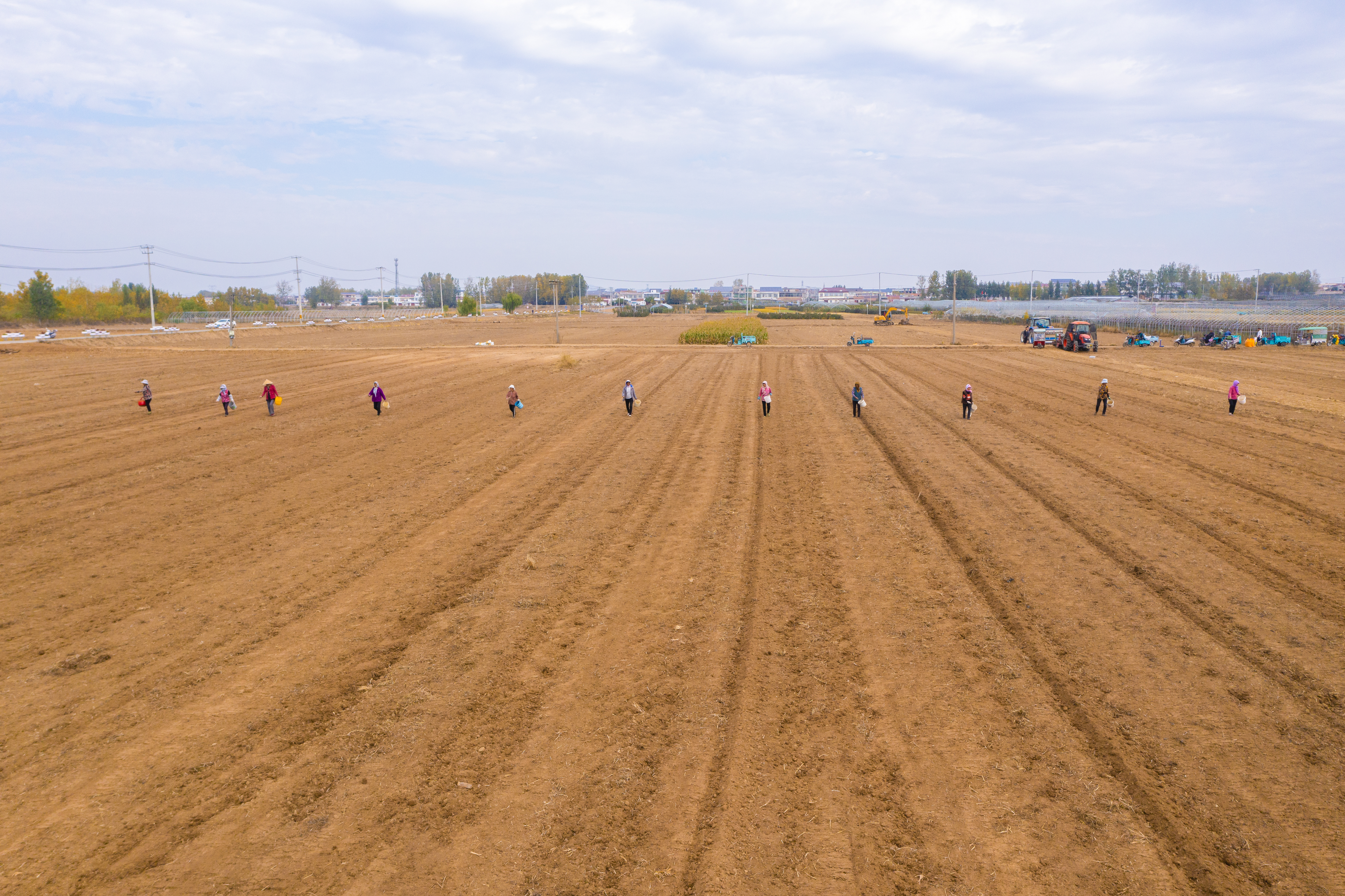 海陵湖公司流转该村500余亩闲置农用地,会同市农科院专家,商讨种植方案,使用大型旋耕机,经过翻耕,平整,统一规划,统一种植。为应对当地气温低的气候特点,选用江苏农科院优质抗寒油菜花种,适时播种,将于10月底完成全部播种任务。