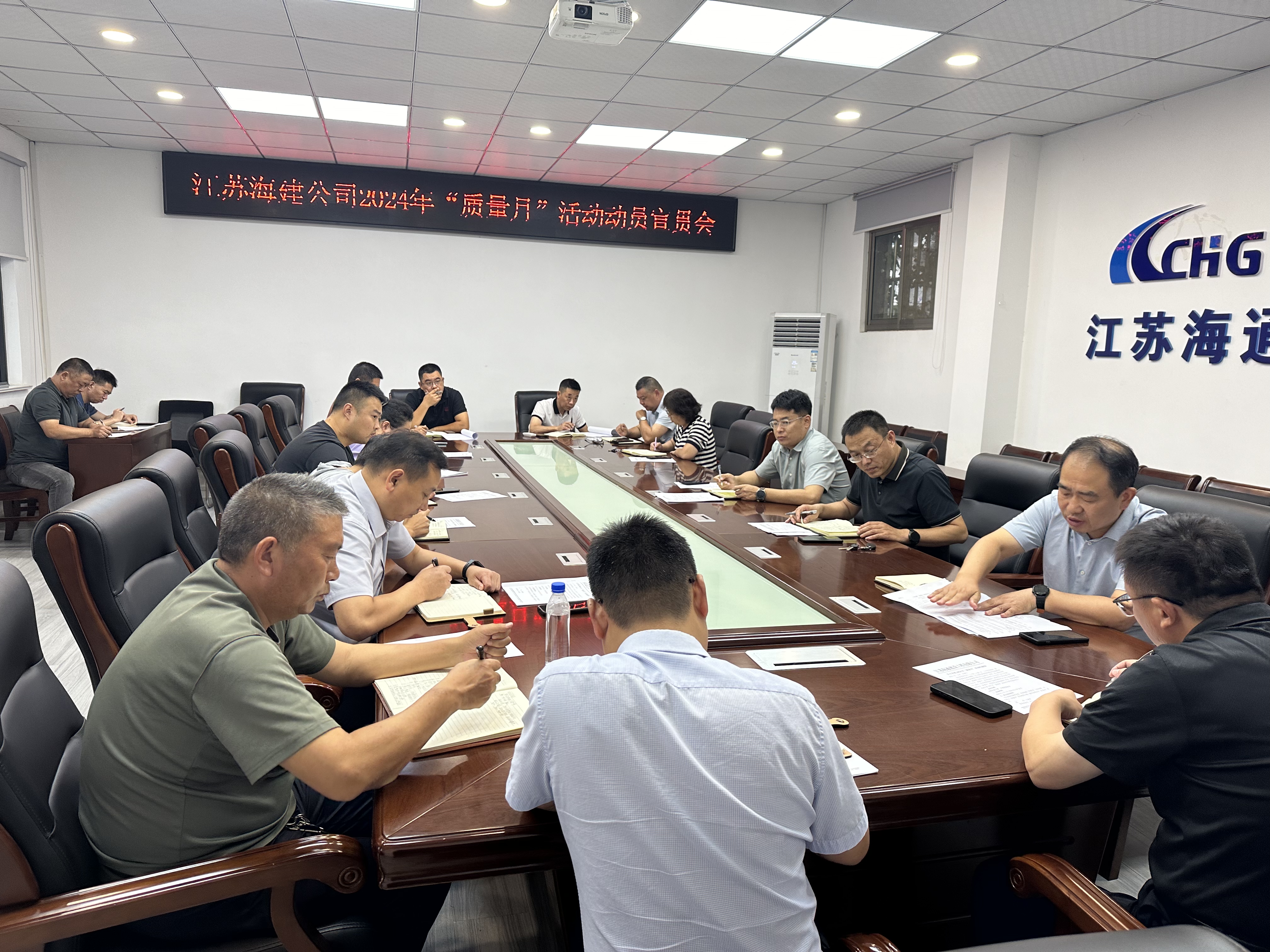今年9月是全国第47个“质量月”。为全面贯彻党的二十大和二十届二中、三中全会精神,贯彻质量强国战略部署,江苏海建公司以“加强质量支撑 共建质量强企”为主题,结合公司实际,精心组织开展2024年“质量月”活动,营造质量兴企、质量强企的浓厚氛围。公司领导班子成员、各部门和各分子公司负责人在海建公司一楼会议室,召开“质量月”活动动员大会,制定本次质量月活动的目标、计划及各任务部署。