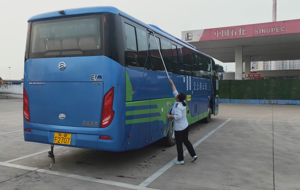 夏季炎热,经过一整天的暴晒,路上的灰尘全都吸附在公交车的车身上,车厢里还有粗心的乘客落下的背包、手机亦或是钱包,驾驶员师傅们会从里到外清理车辆卫生,不仅仅是创文工作要求,更想让乘客拥有一个舒适的乘车环境。对了,把东西落在公交车的乘客也不用担心,只要驾驶员捡到了你丢失的东西,一定会妥善保管,等你前来认领