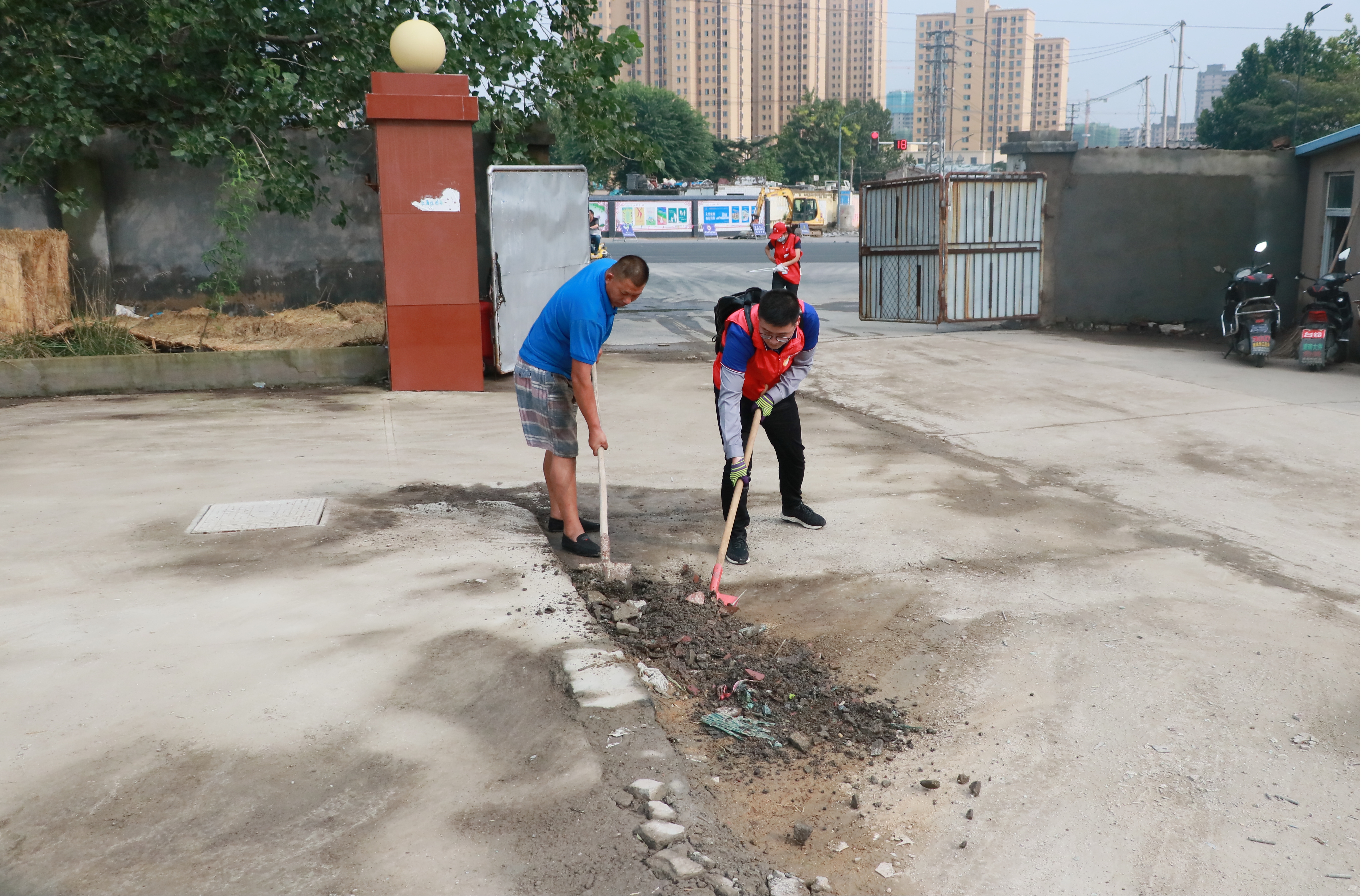 8月27日下午,江苏明茂新能源科技有限公司员工在公司党支部的领导下走进新西社区开展联动共建工作。在活动中,党员志愿者们积极发挥党员先锋模范作用,拿着铁锹、铁钳、扫帚等劳动工具,对社区周边背街小巷建筑工地等进行全方位清扫,在大家的“奋战”下,原先凌乱的地方重新恢复了整洁的面貌。