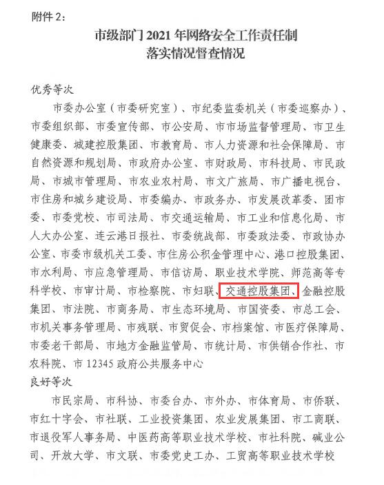 日前,市网信办通报2021年度全市党委(党组)网络安全工作责任制落实情况督查检查结果,世界杯app最新版下载,世界杯(中国)被评为优秀等次。