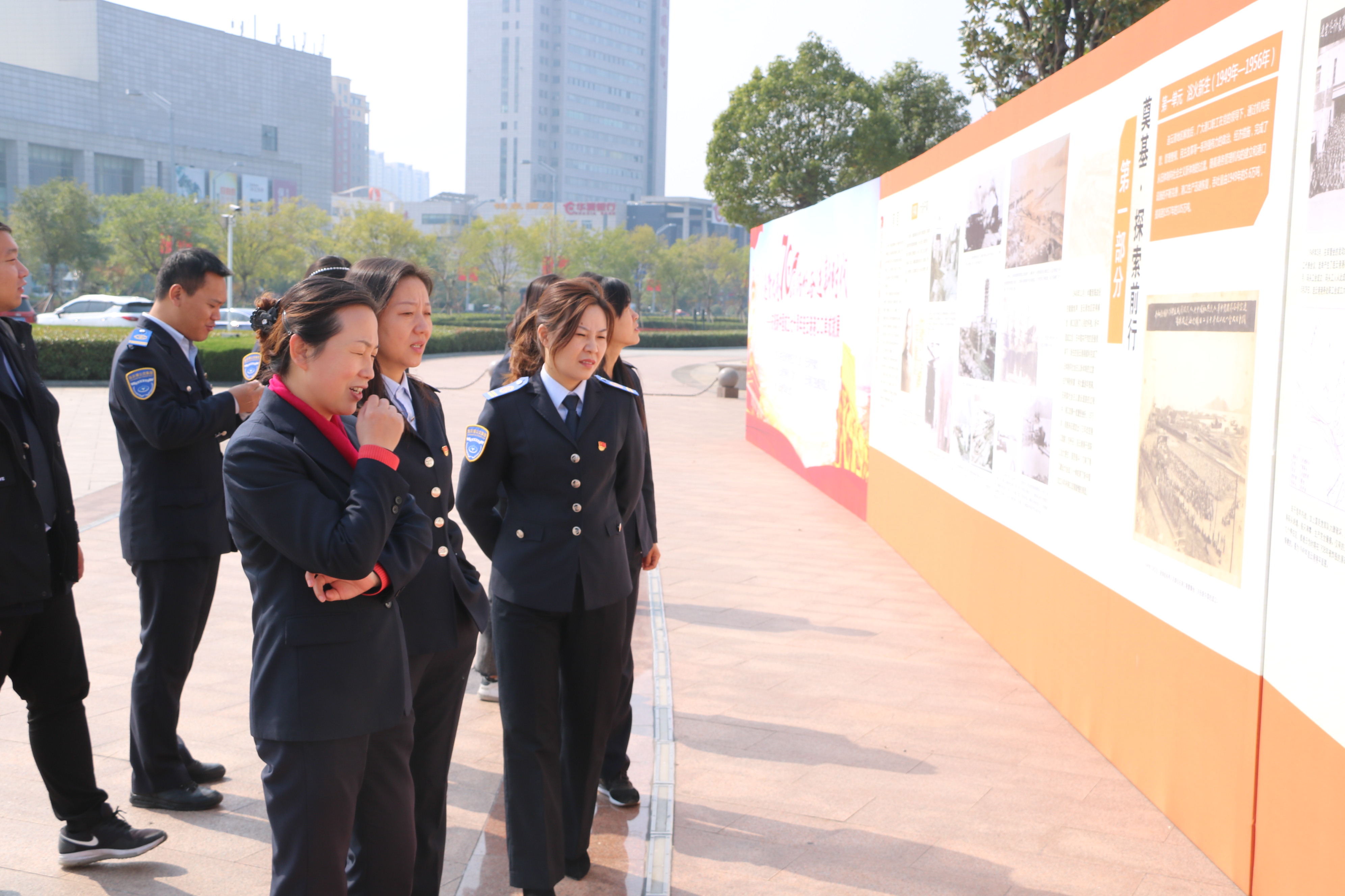 参观结束后,全体党员前往市政府广场前,继续参观“逐梦大港70载扬帆奋进新时代” —庆祝新中国成立七十周年连云港港口口岸成就展,展览共分为“序幕·大港开篇”、“奠基·探索前行”、“启航·大港初显”“腾飞·奋进新时代”4个篇章,展线长度200余米,展出展板115块,图片、文件照片280余张,全面展现了新中国成立70年来,特别是党的十八大以来所取得的重大成就。