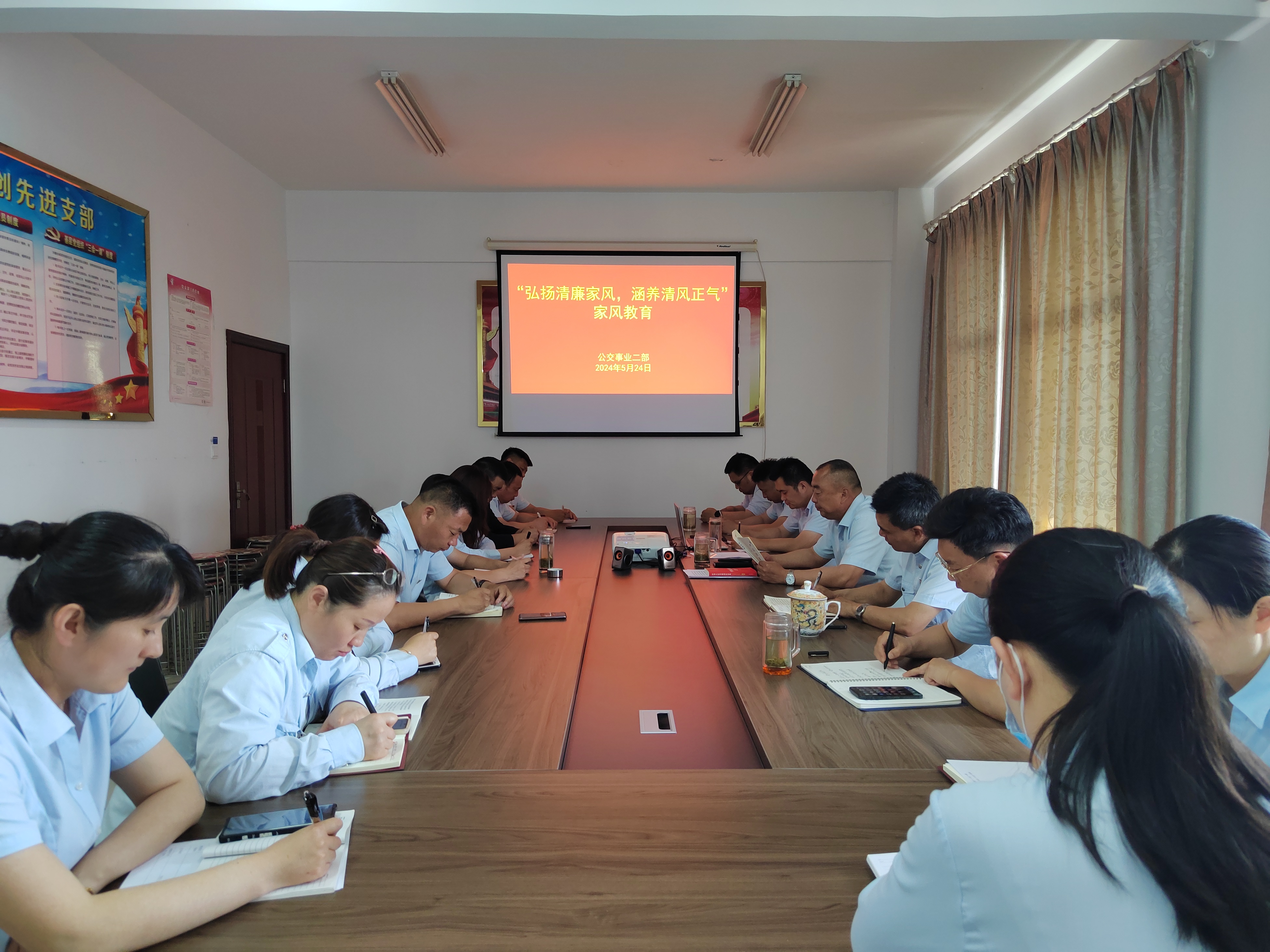 活动伊始,支部书记、经理庄刘柱带领大家学习家风教育读本《严以治家》中“把妻儿引向深渊的头羊—— 海南省委原常委、海口市委原书记张琦家风问题剖析”。活动中,大家集中观看了纪录片《家风》:孕育(上集)。通过典型案例和记录片的学习,提醒大家守住“底线”、远离“红线”、吹好“枕边风”,不触碰“高压线”,以良好家风涵养作风,始终保持清正廉洁、严谨务实的工作作风。