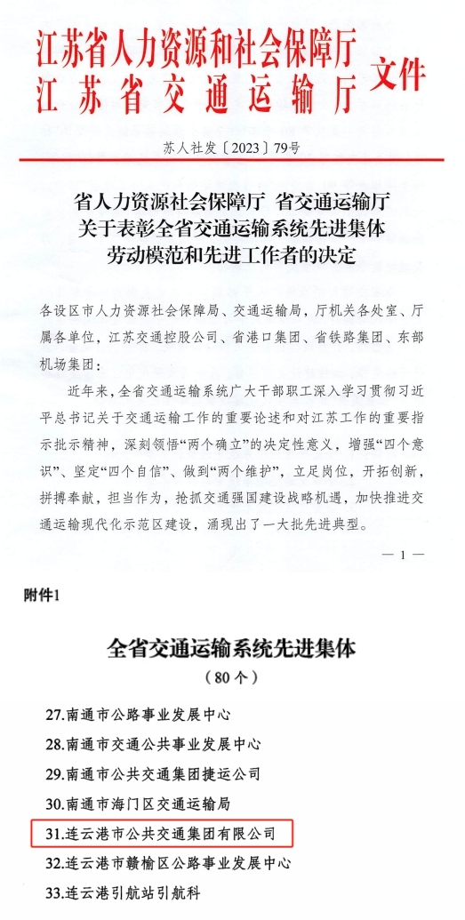 近日,公交世界杯app最新版下载,世界杯(中国)被省人力资源社会保障厅、省交通运输厅授予“全省交通运输系统先进集体”荣誉称号。