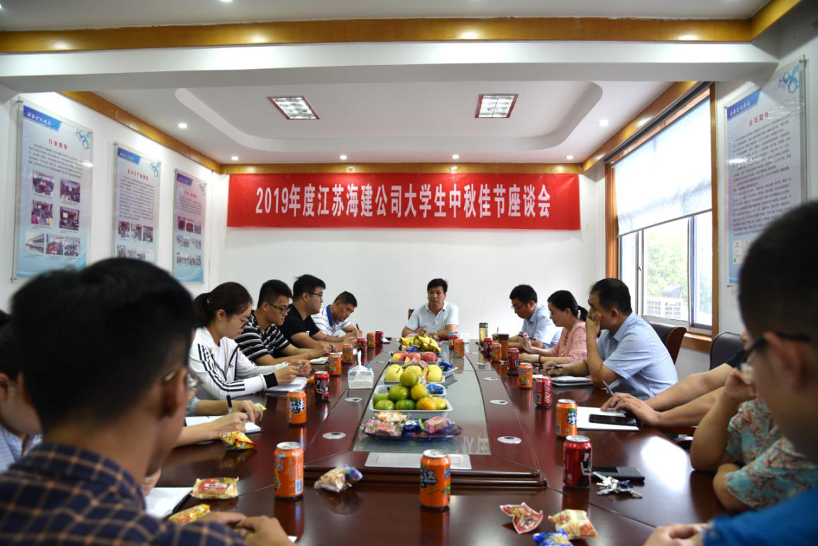 9月10日上午,江苏海建公司举办了2019年中秋节大学生座谈会,公司各级领导与近三年入职的十几名大学生欢坐一堂,畅谈心声。