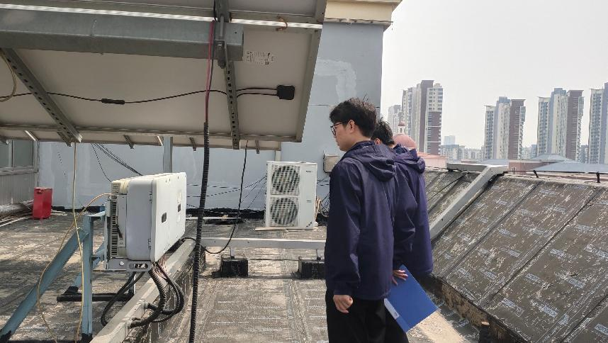 运维人员对楼顶光伏组件展开“地毯式”排查,确保每块光伏板都完好正常、固定光伏支架都安全锚固、电能转换设备都正常运行,对检查出的松动螺栓和轻微松动的夹具立即进行拧紧加固,对光伏板钢化玻璃表面进行透光率检测和清洁,同时清理排水槽积尘,确保极端天气下排水通畅。运维班组建立“线上监测+线下巡检”双轨模式,通过智能监控平台实时追踪发电数据。建立周期性检查制度,制定防腐蚀专项维护方案,特别对沿海盐雾环境下的金属构件加强防护。