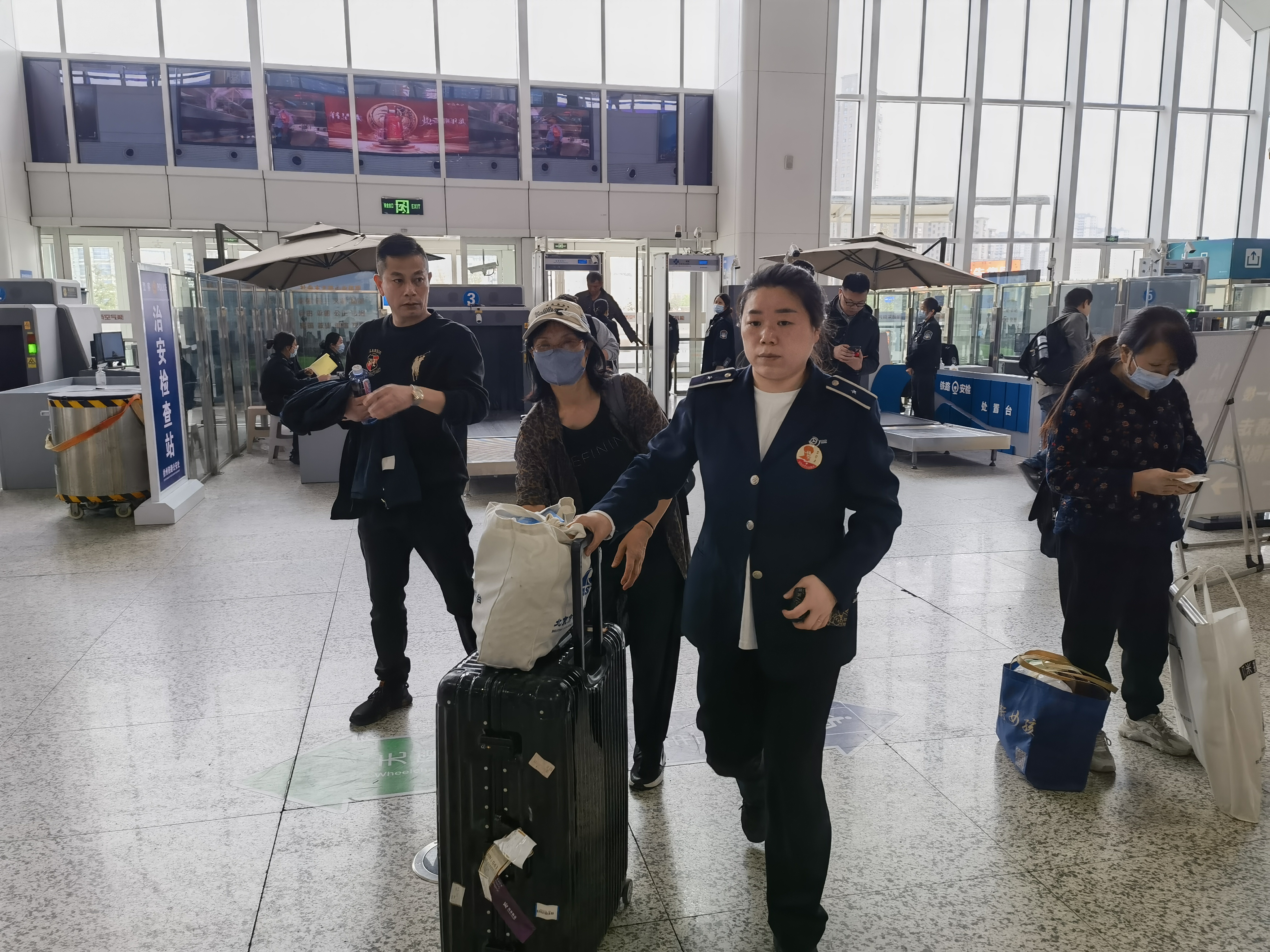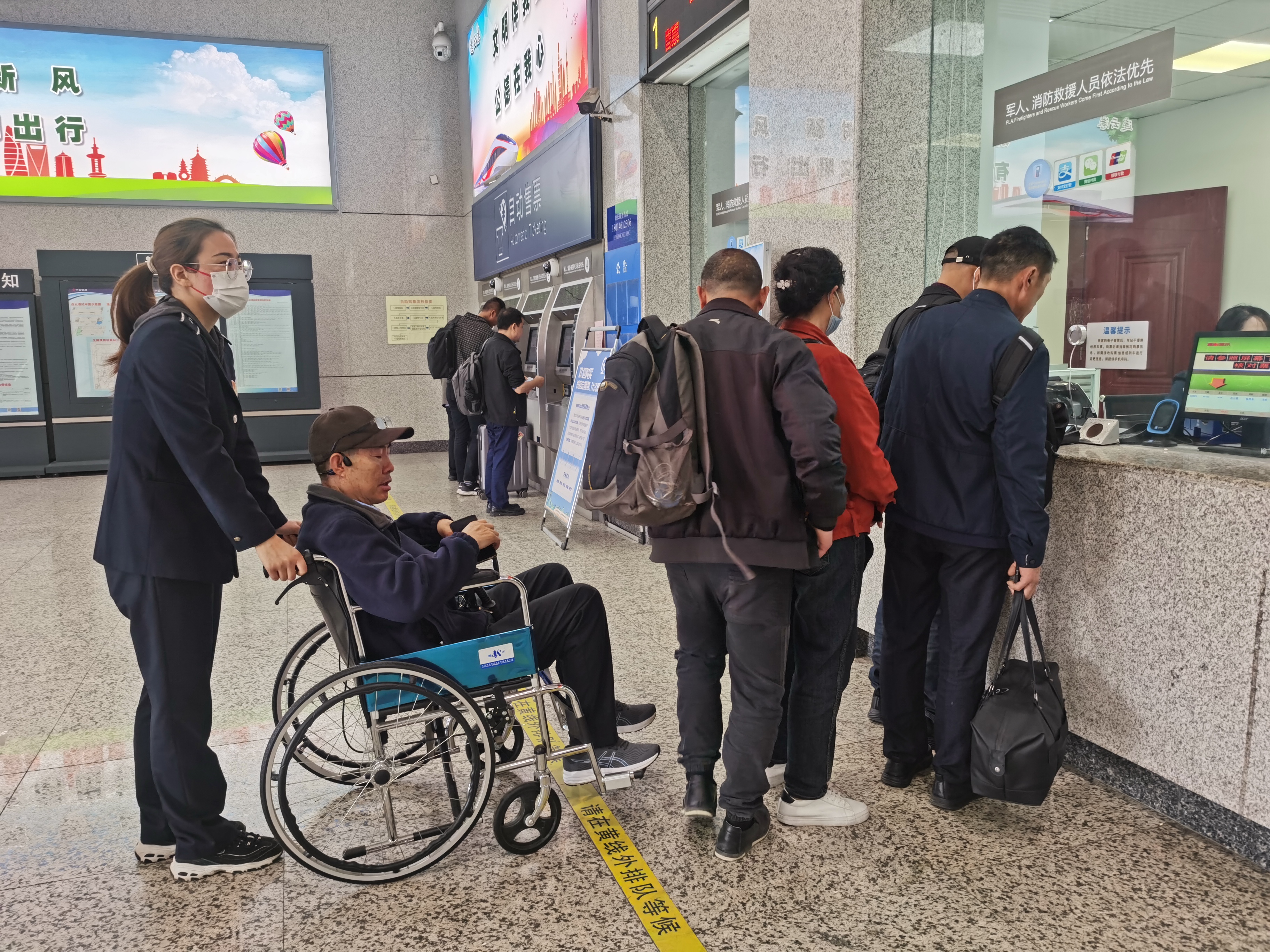 原来,这对老夫妇准备乘坐高铁去日照探亲,但由于身体原因和携带行李较多,担心无法及时赶上车。在了解具体情况后,“雷锋车”手芈丹和吕红立即行动起来,她们取来轮椅,小心翼翼地帮助老人坐上轮椅并整理好行李。她们一路陪伴老人至高铁站,协助完成验票、行李查验等流程,并与高铁站工作人员沟通协调,确保老人顺利登车后才放心离开。