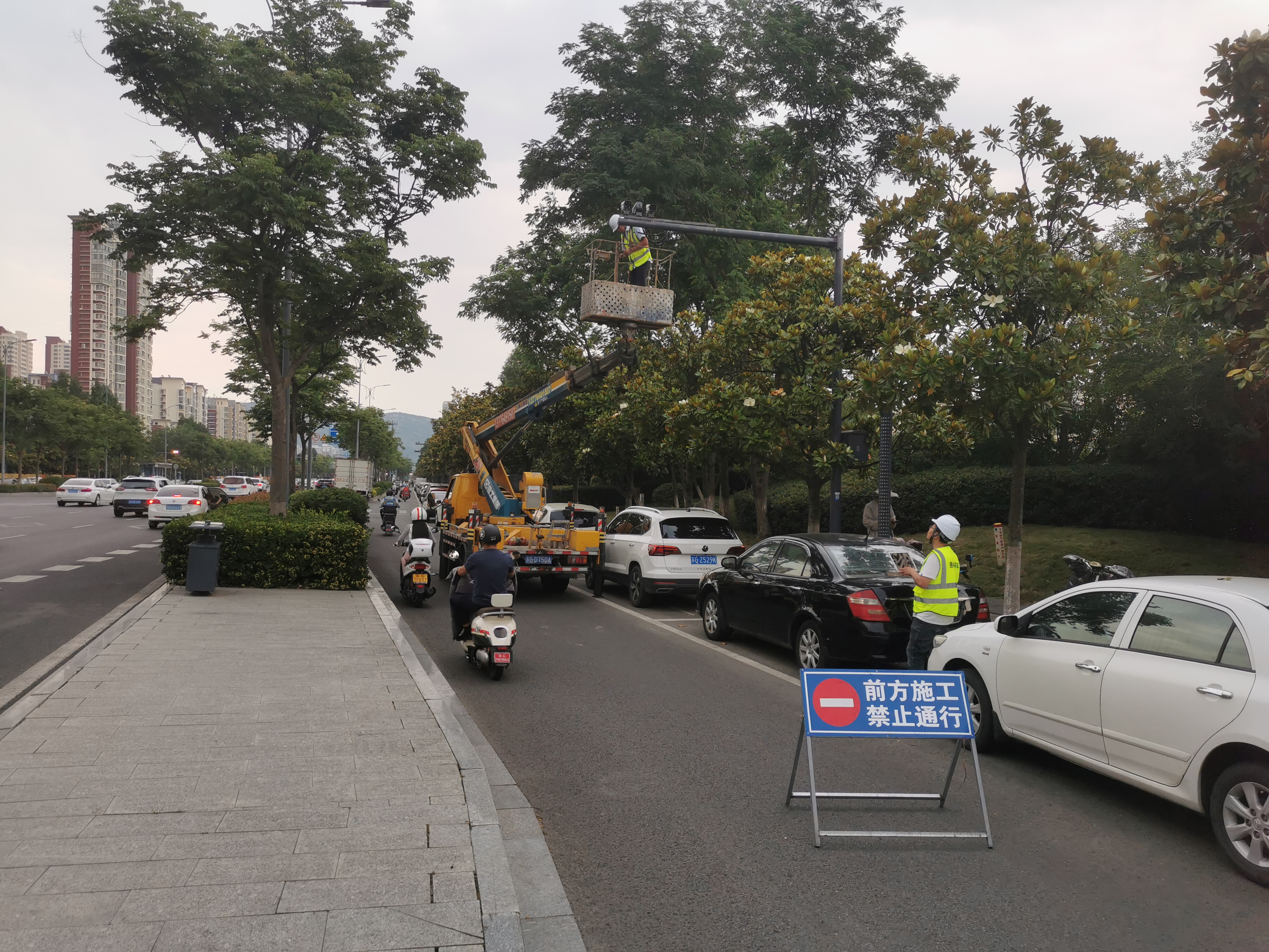 6月12日、13日,公司设备巡检员、安全员协同施工单位吊装车前往海宁东路、科苑路、东盐河路、朝阳路、东苑巷、郁洲路等路段,调试解决高位视频设备偏移、杂物附着、线路松动等异常状况,现场同步测试智慧停车平台在调试后能否清晰、准确地采集车辆信息,确保各路段泊位设备稳定运行。