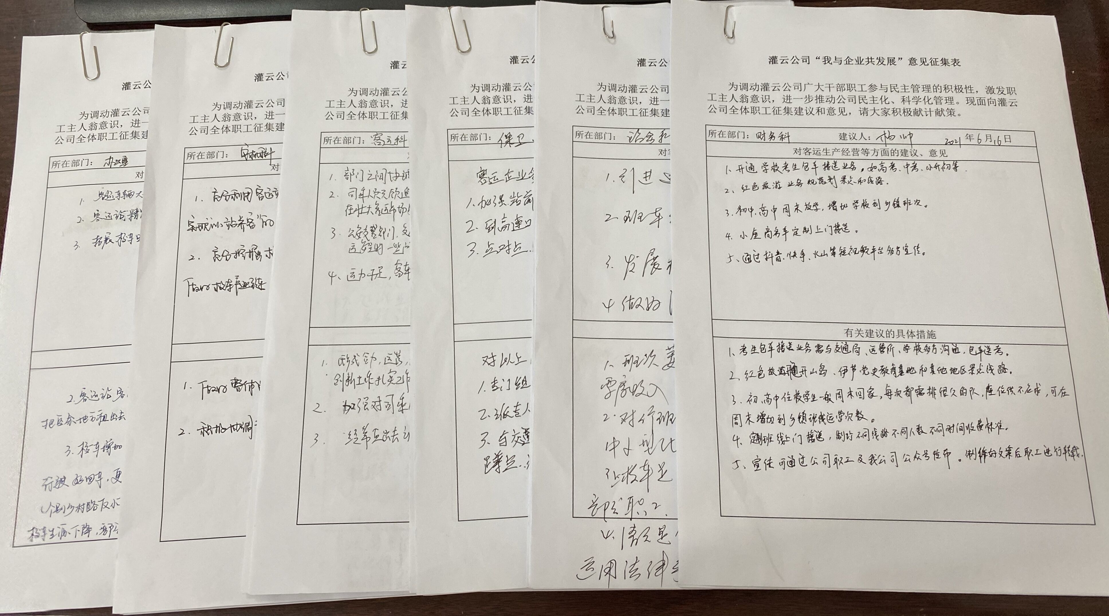为贯彻落实汽车公司转型发展工作总体思路,提高职工参与企业管理的工作热情,牢固树立“我与企业共命运,我与企业共发展”的主体意识,6月15日至18日,连汽灌云公司工会组织开展了“我与企业共发展”建议征集活动。