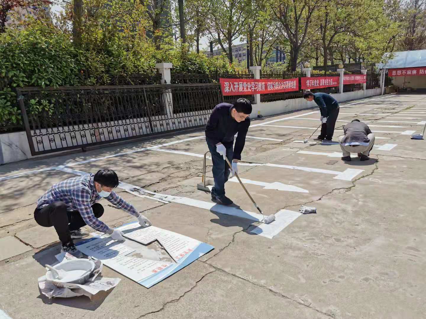 七年来,他们牢固树立为人民服务宗旨,牢记一名党员就是一面旗帜的先锋理念,用实际行动践行着“为民办实事”实践活动,一件件实事广受大家好评。不管是冬季结水成冰、夏季晴天雨天,他们挥汗如雨清扫院内垃圾落叶;恶劣天气频发季节,他们清掏下水道淤泥,保持下水通畅,为大家的雨天出行提供方便;院内停车场停车线模糊不清,他们放弃休息日重新划线,既方便了同事们停车,又美化了院内环境,为创文巩卫作出积极贡献。