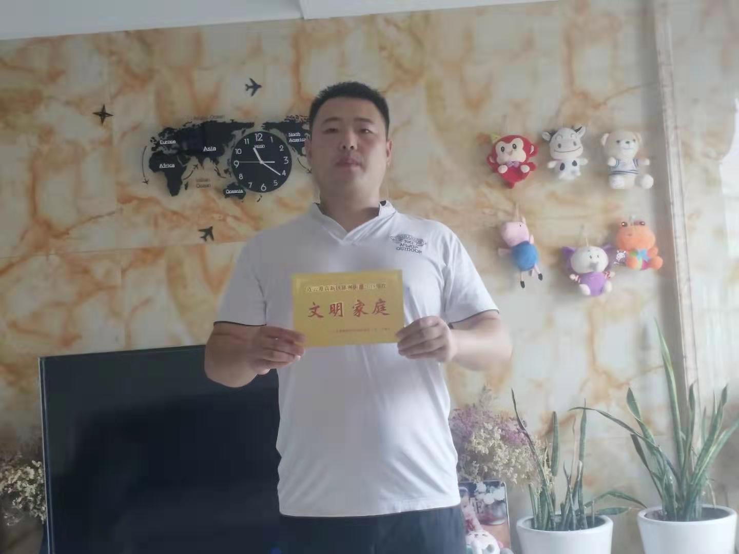 锣鼓喧天、欢声笑语。7月24日早上,郁州街道魏主任带领锣鼓队,敲锣打鼓来到长途公司职工刘波家中,亲手将“文明家庭”荣誉牌送到刘波手中,表彰他为“建设美丽港城、构建文明家园”所做出的成绩。